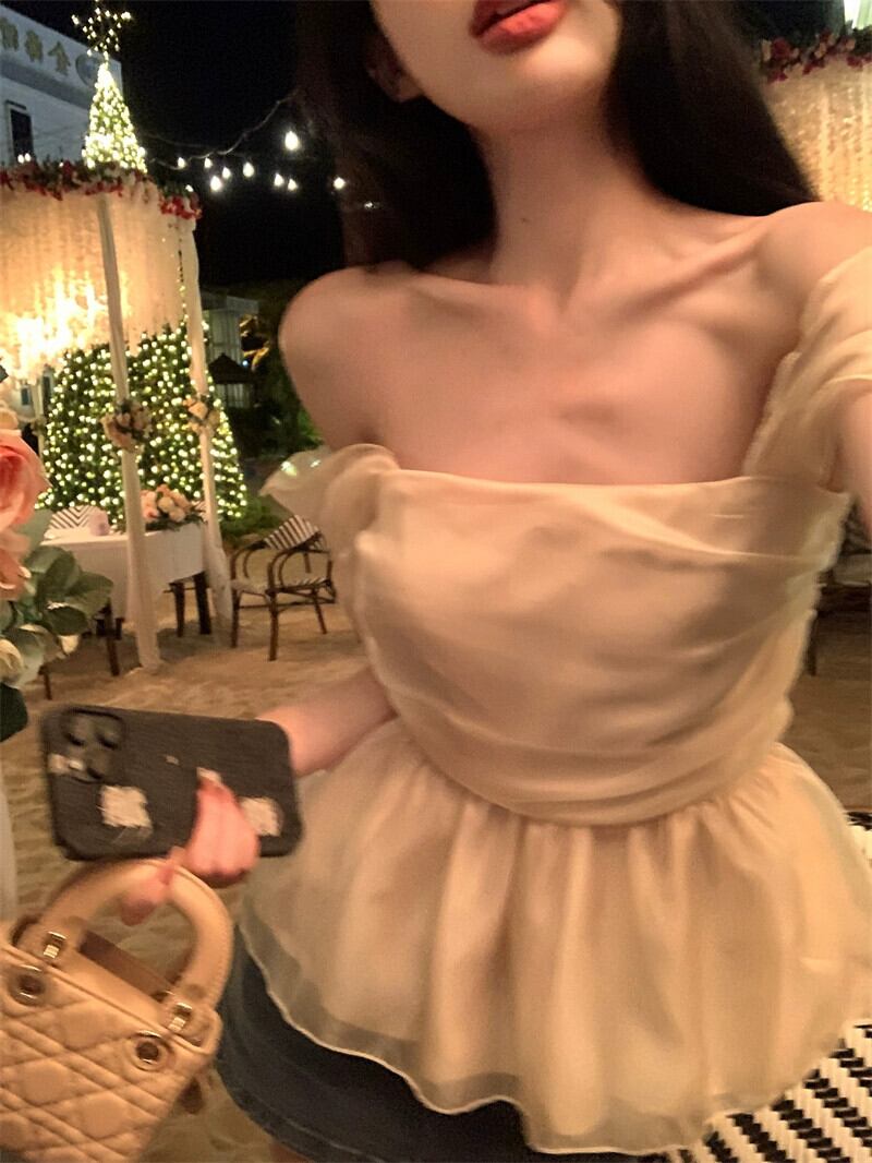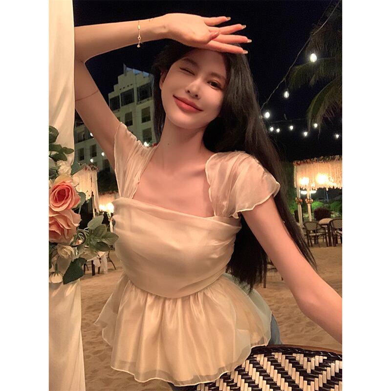 2023 夏の新しいフレンチスクエアカラーデザインノースリーブスリムシフォンシャツレディーススーパーイントレンド サマー 夏物 スクウェア missk68876007568