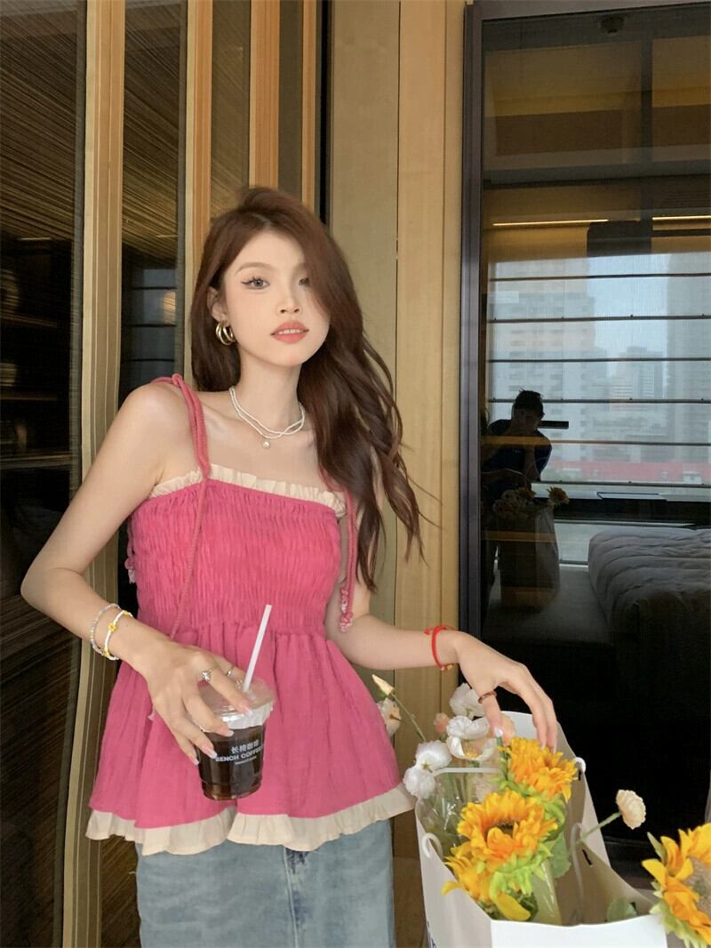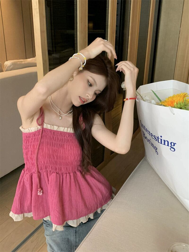 スイートステッチキャミソールレディース2023年夏ガーリーニッチフォールドウエスト着用トップス 大人ガーリー スウィート キュート カジュアル サマー 夏物 missk2154913742