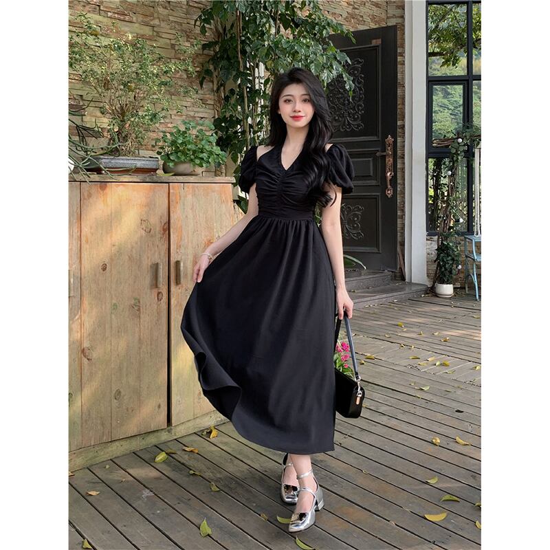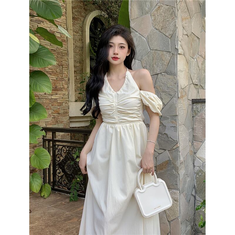 ホルターネックデザインパフスリーブドレスレディース2023夏新作優しい風ウエスト痩身ミドル丈スカート サマー 夏物 missk61237058080