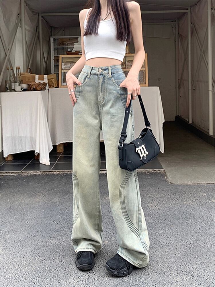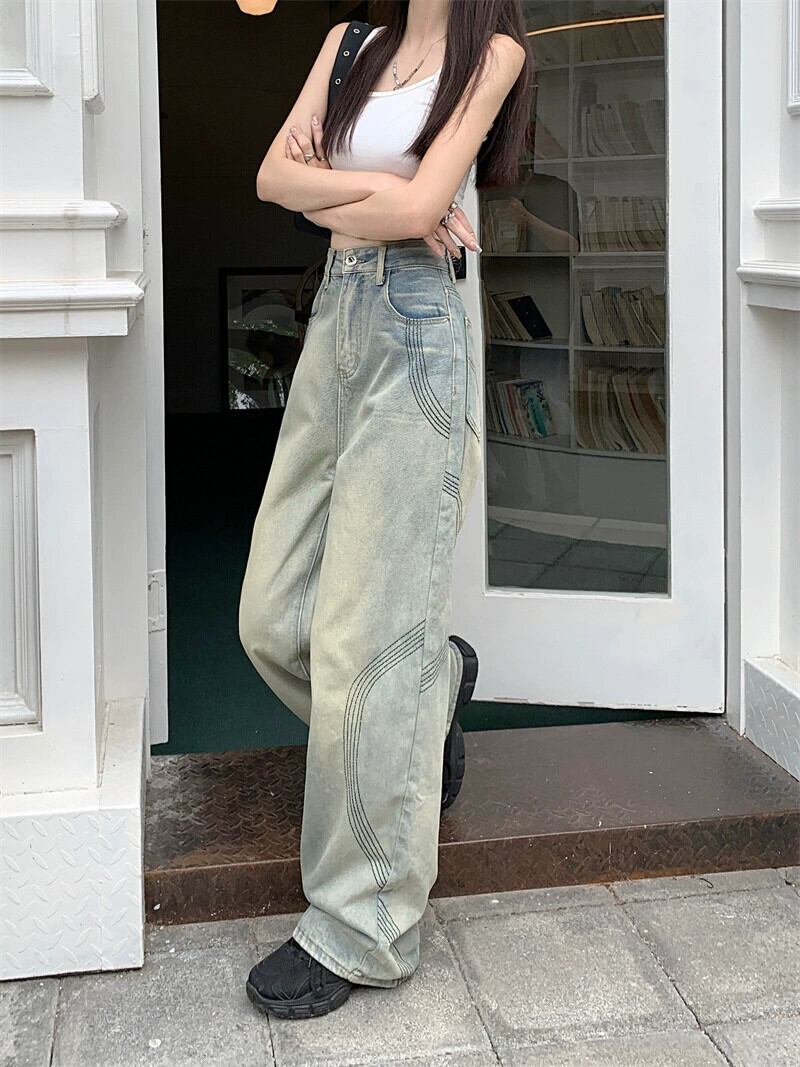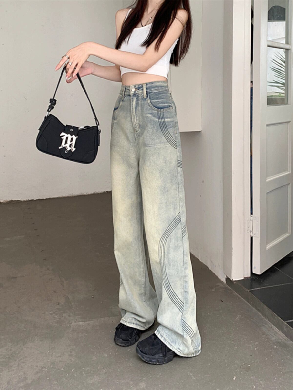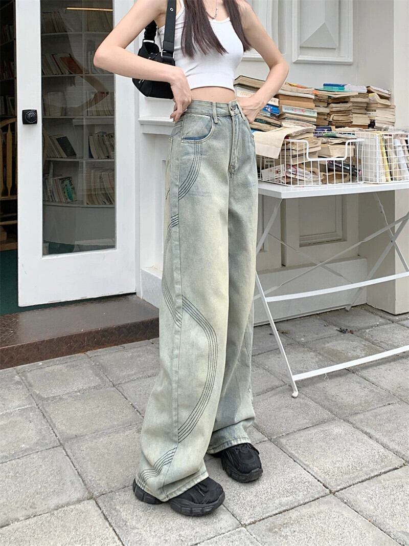 アメリカンウォッシュジーンズレディース夏新作ハイウエストデザインドレープ感フロアモップパンツワイドレッグパンツトレンディ ハイウェスト サマー 夏物 ワイドパンツ missk36792889650