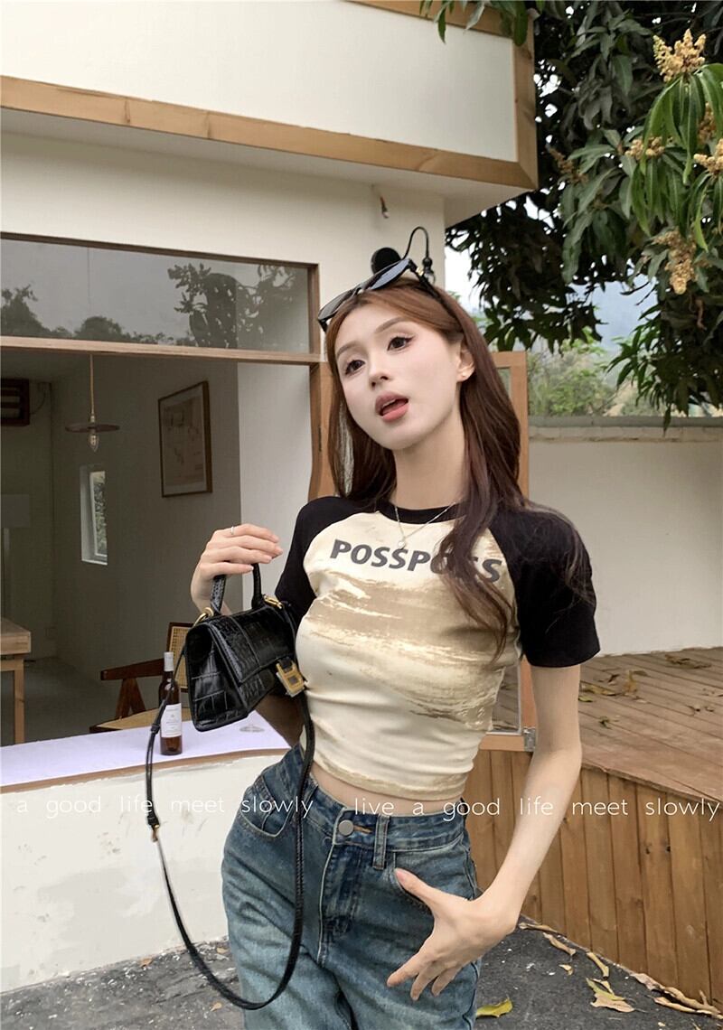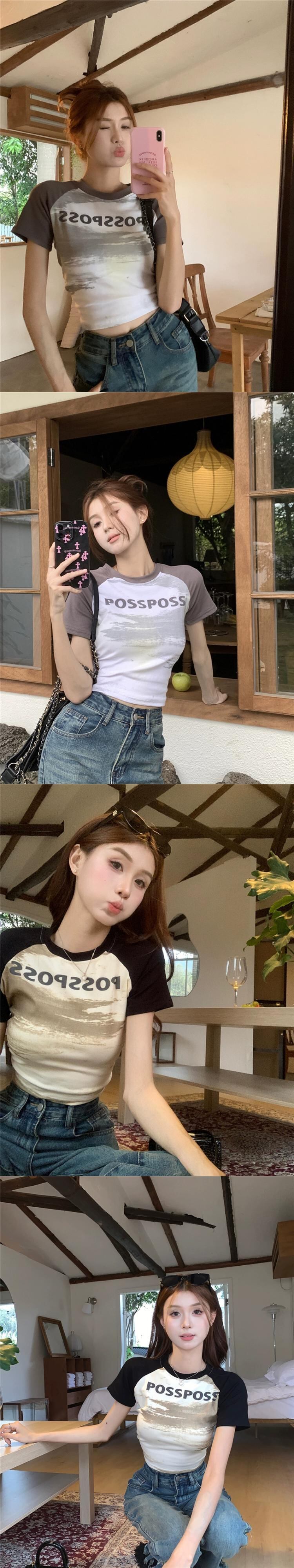 タイダイコントラストカラーTシャツレディース2023年夏新作レトロスリムフィット半袖半袖トップイン サマー 夏物 missk91868427826