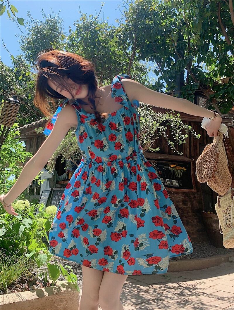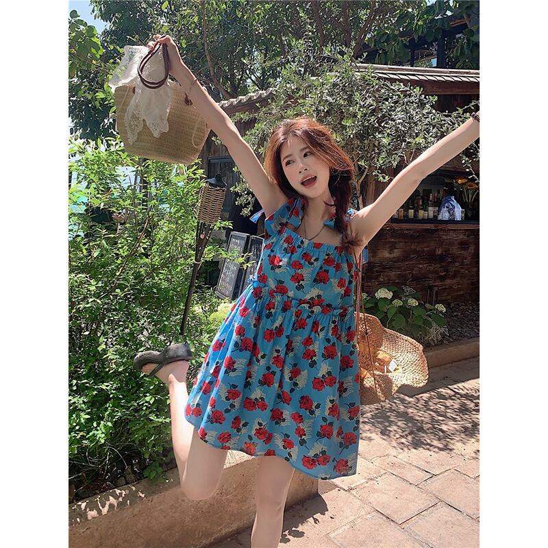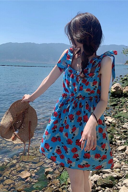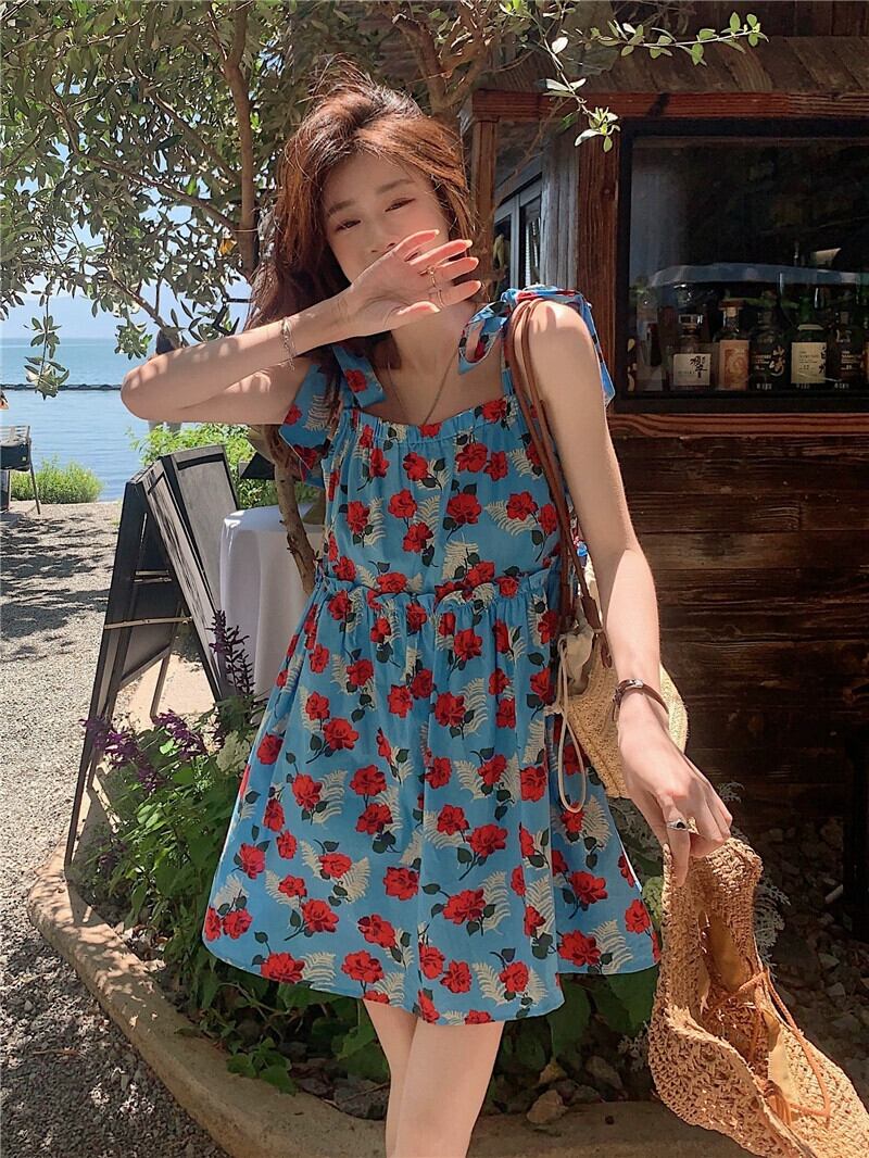 シーサイドホリデースタイル花柄スリングドレス夏 2023 新しいネクタイウエストフレンチティーブレークショートスカート女性 サマー 夏物 missk91417242604