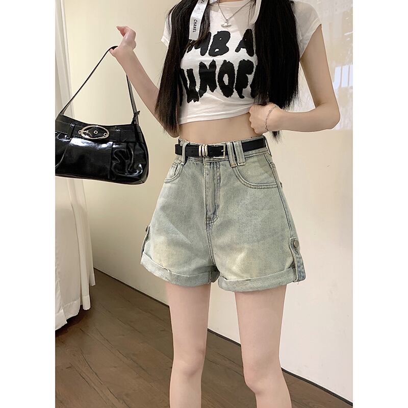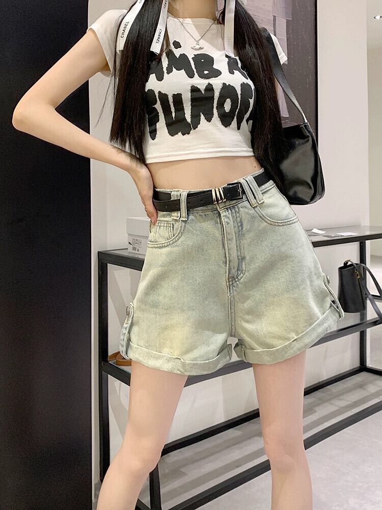 アメリカンレトロジーンズ夏 2023 新しいハイウエストルーズワイドレッグパンツインショーツ女性のアウターパンツ ハイウェスト サマー 夏物 ブルマー ワイドパンツ missk86925527499