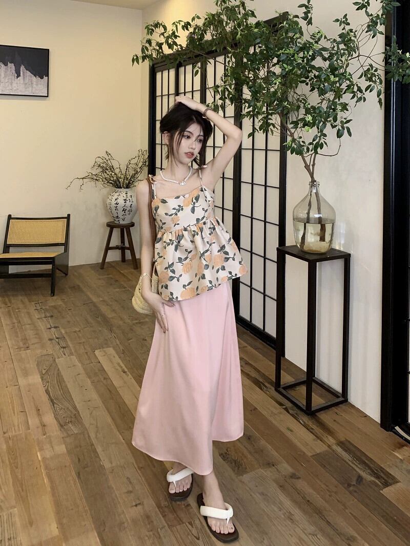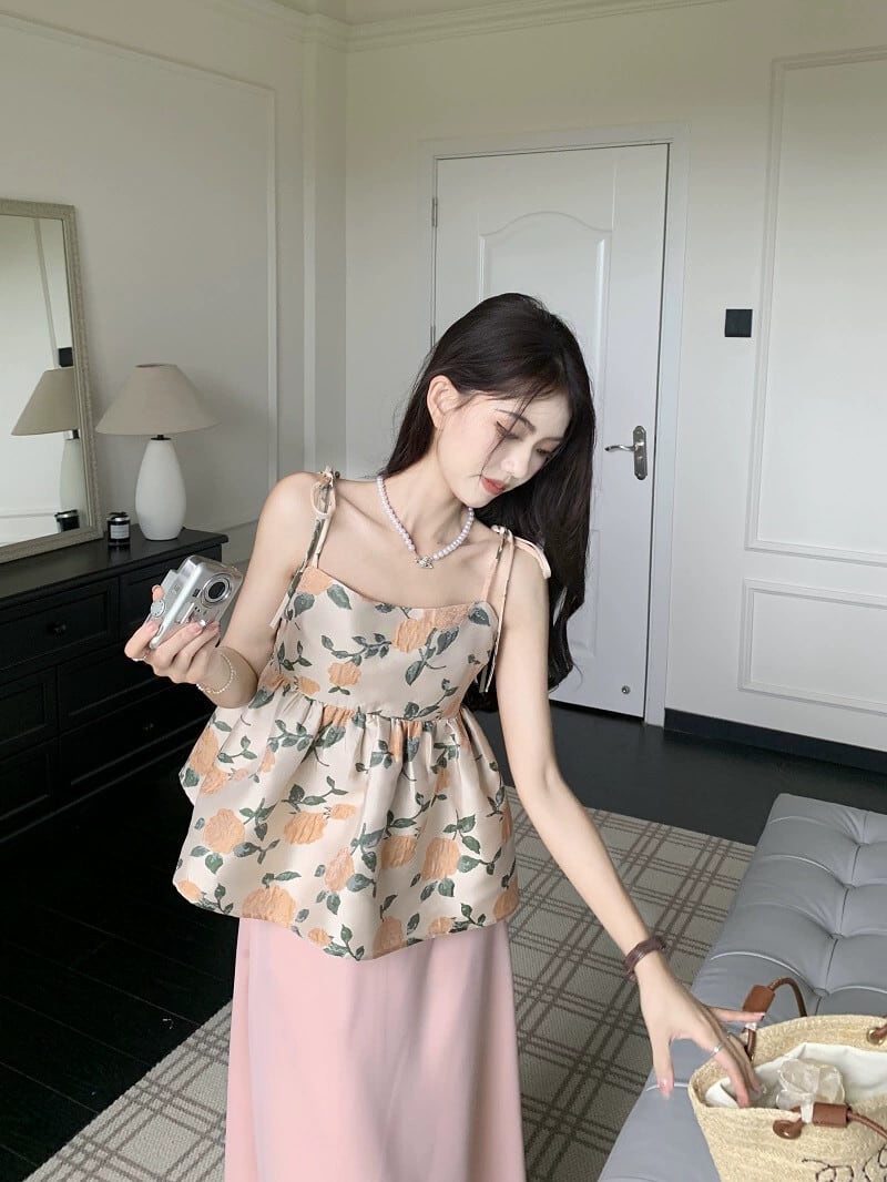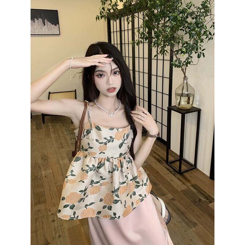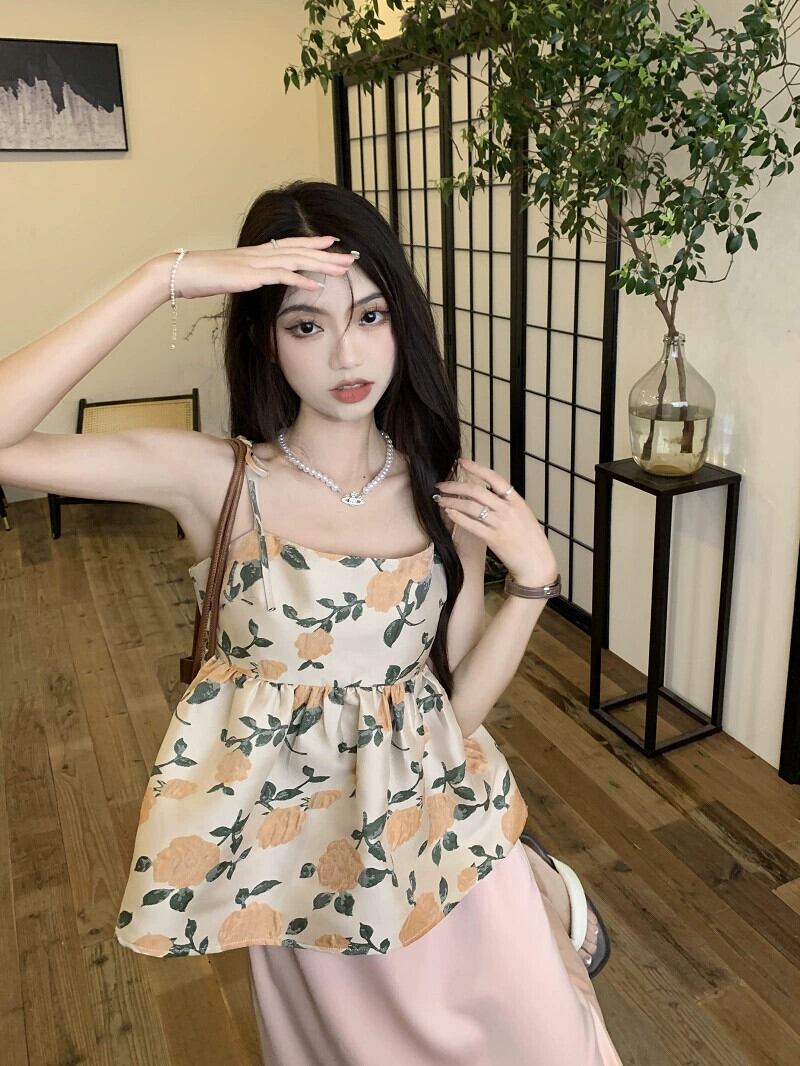 花柄キャミソールレディース2023年夏新作甘くて可愛いデザイン感の薄くて年齢を軽減するふわふわトップスを着ています。 大人ガーリー スウィート キュート カジュアル サマー 夏物 missk63742853738