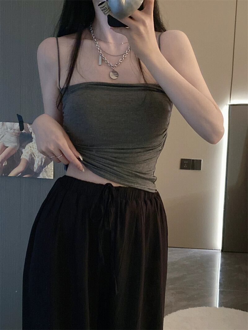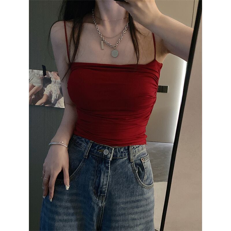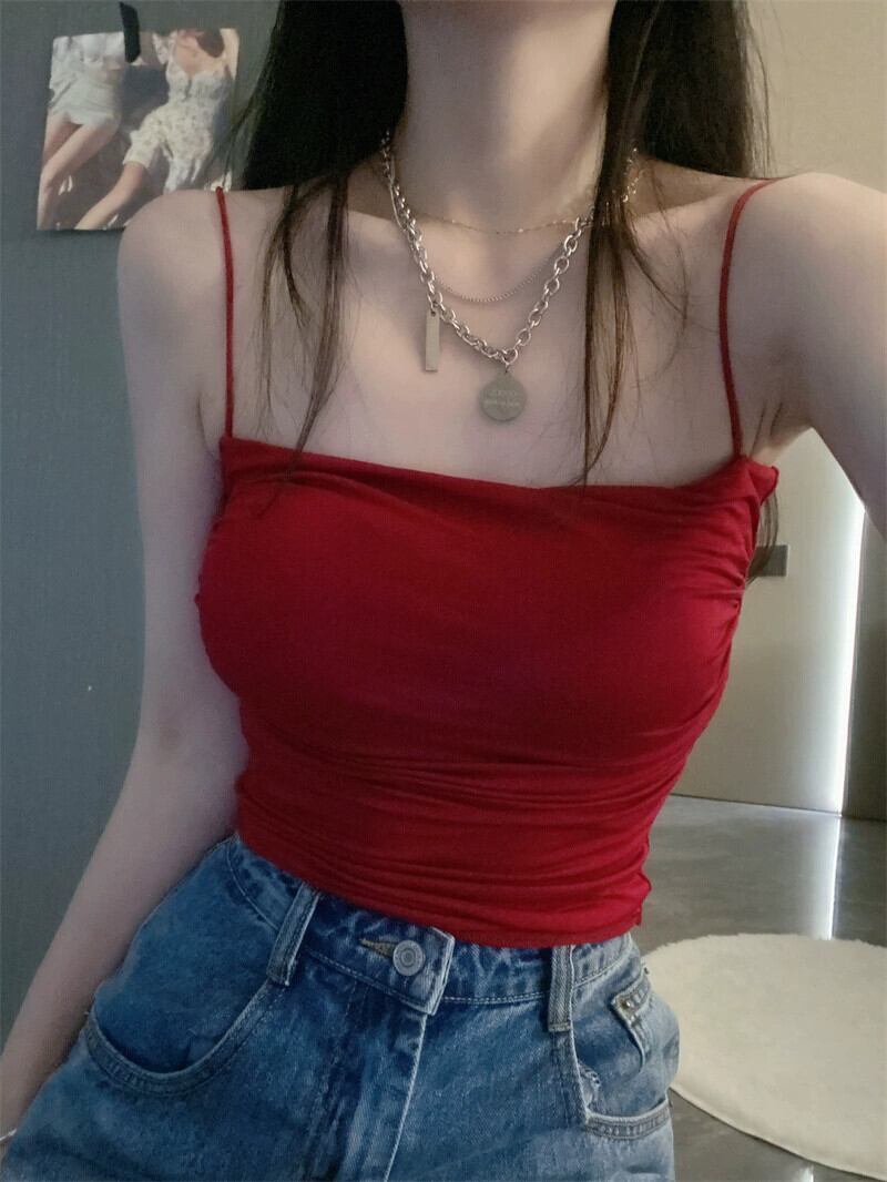 ホットスタイル赤ショートスタイルアウターウェア小さなサスペンダー夏の新しいデザインセンススリムセクシーなインナーベストトップ女性 レッド サマー 夏物 missk82061948737
