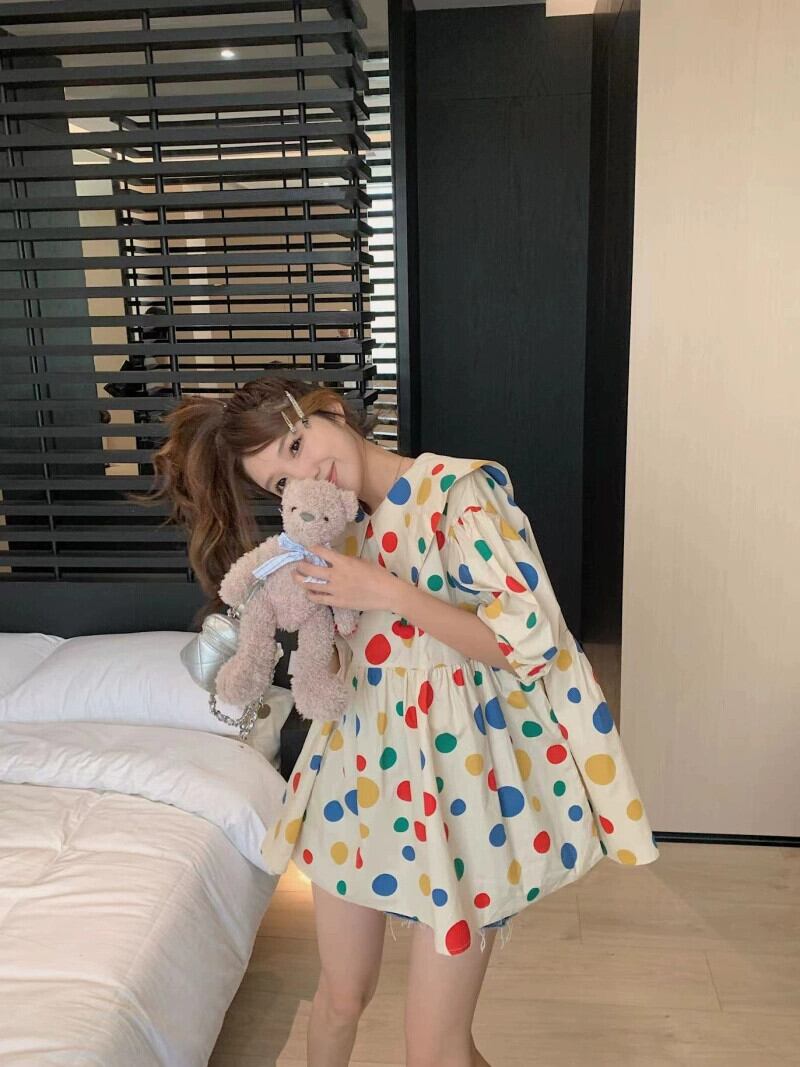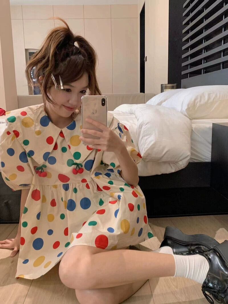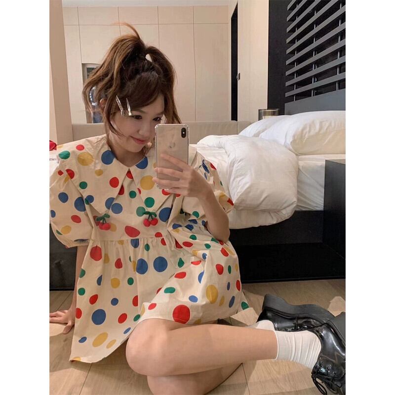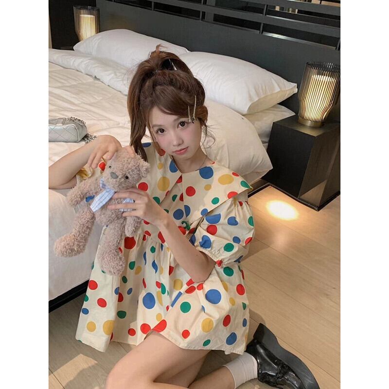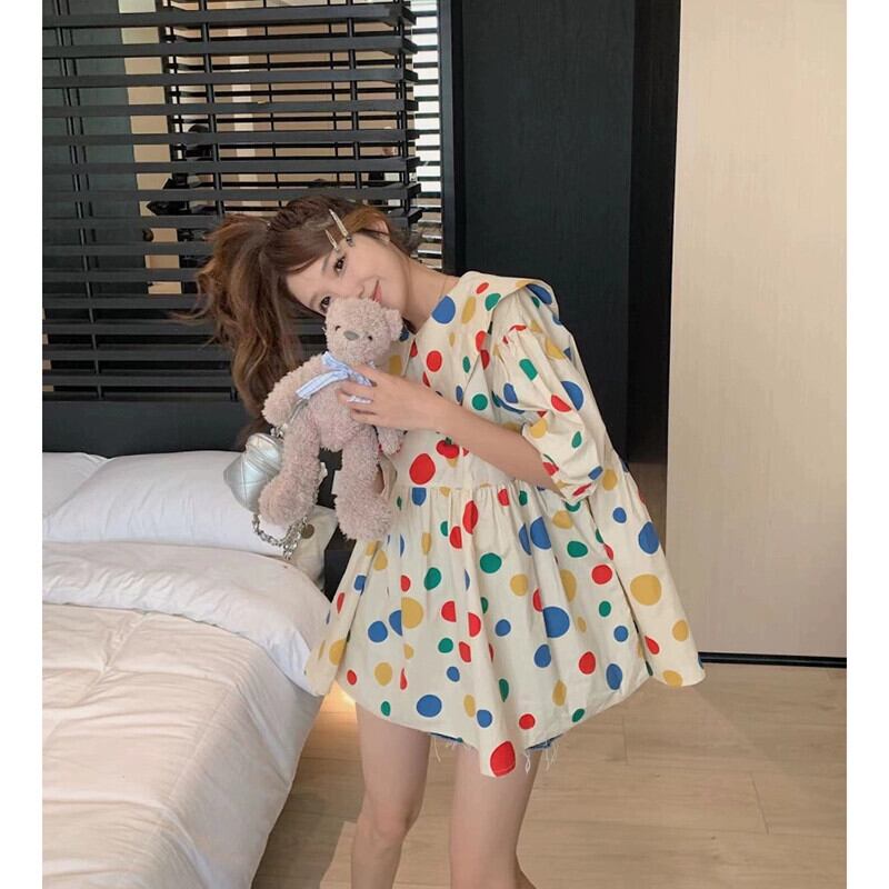 甘いカラー水玉シャツ女性の夏の 2023 新デザインパフスリーブ人形襟ルーズシックな小さなシャツ 大人ガーリー スウィート キュート カジュアル サマー 夏物 missk77406526751
