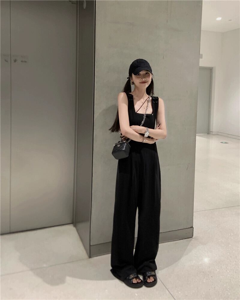 インスタイルサスペンダーカジュアルパンツレディース夏バージョン2023新しいウエスト痩身ワイドレッグストレートチューブジャンプスーツロングパンツ サマー 夏物 missk35244036883
