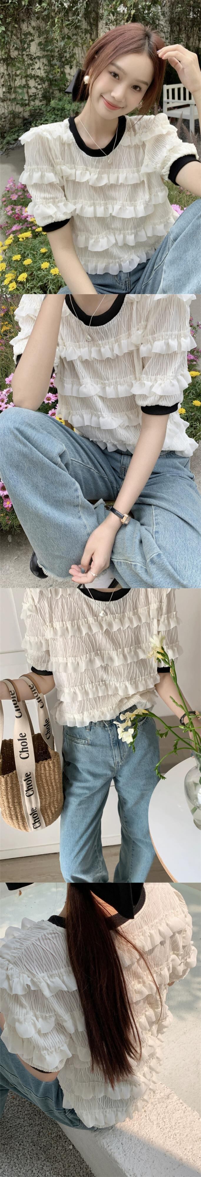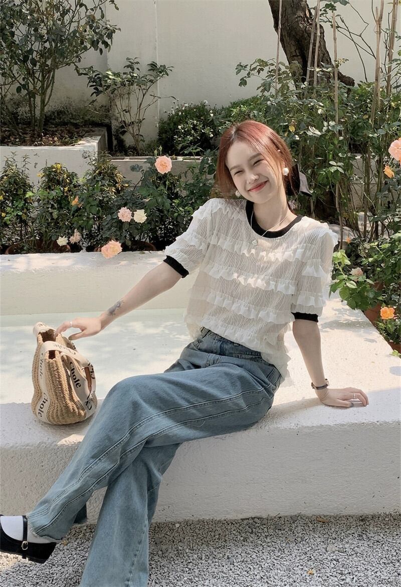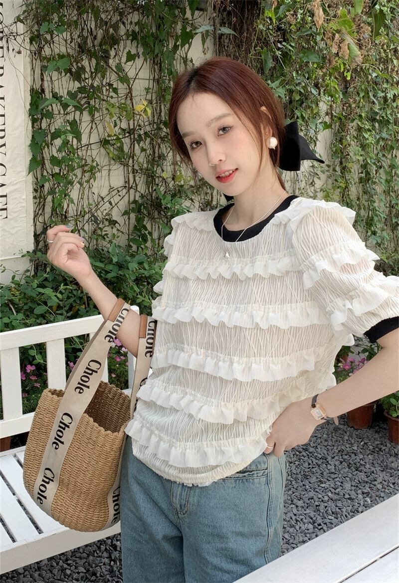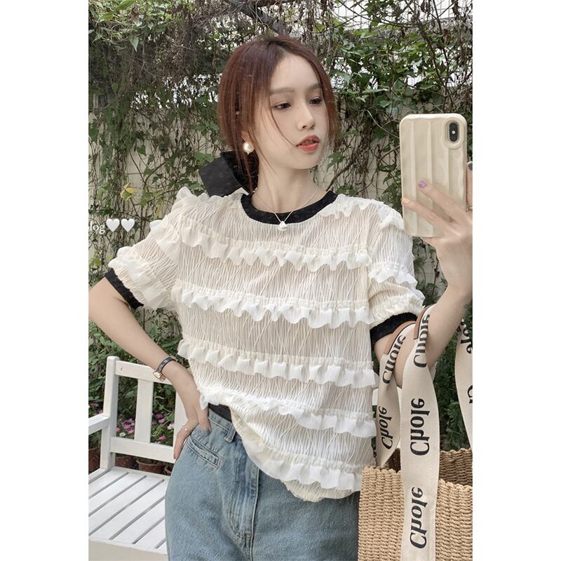 木耳パフスリーブシフォンシャツレディース2023夏新スタイル小さな香りデザインセンスeignスタイル半袖トップ サマー 夏物 missk10583988815