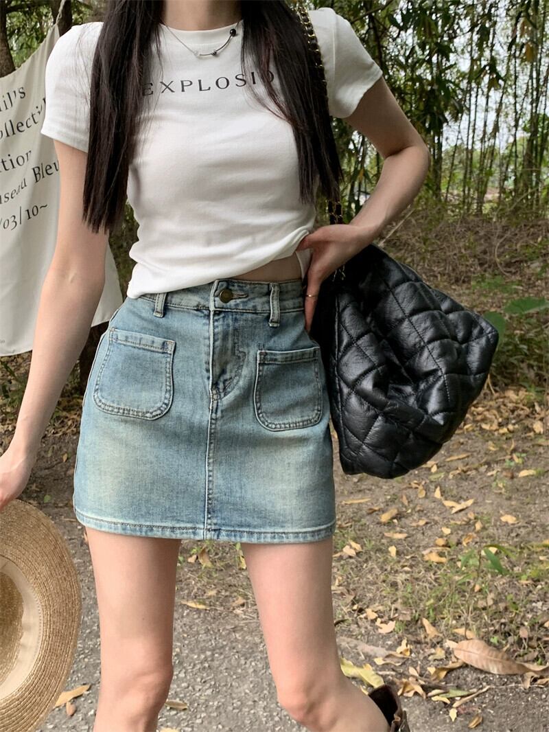 防光スカート夏 2023 新しいレトロウォッシュハイウエストデザインセンスデニムバッグヒップスカート女性 ハイウェスト サマー 夏物 missk3970663056
