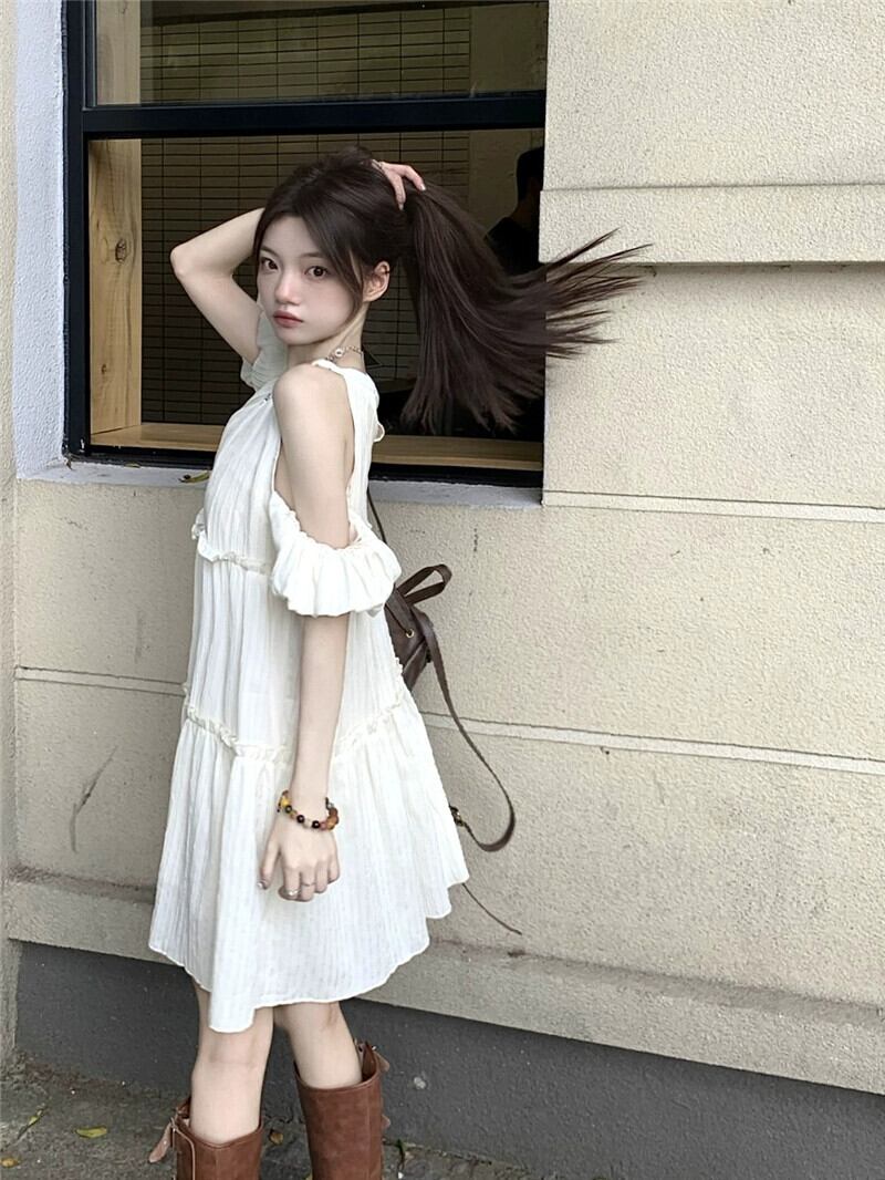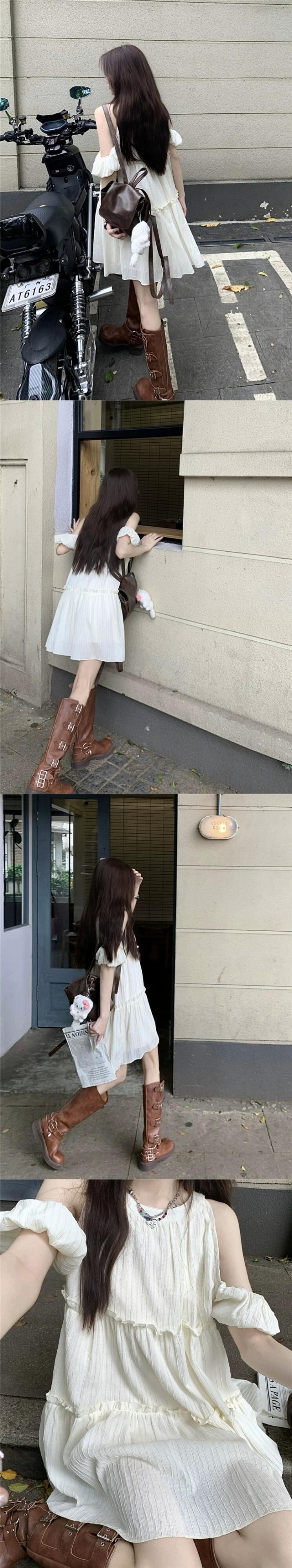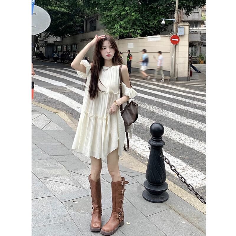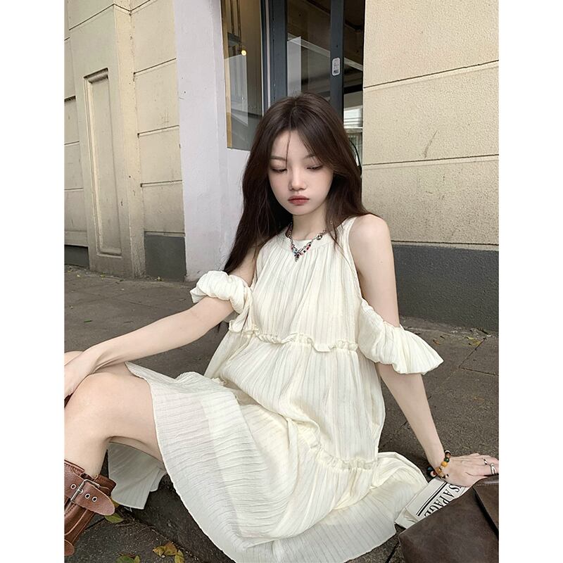 オフショルダー半袖ドレスレディース2023年夏新作甘いデザインセンス丁寧に機械に見える薄いふわふわAラインスカート 大人ガーリー スウィート キュート カジュアル サマー 夏物 missk76472764707