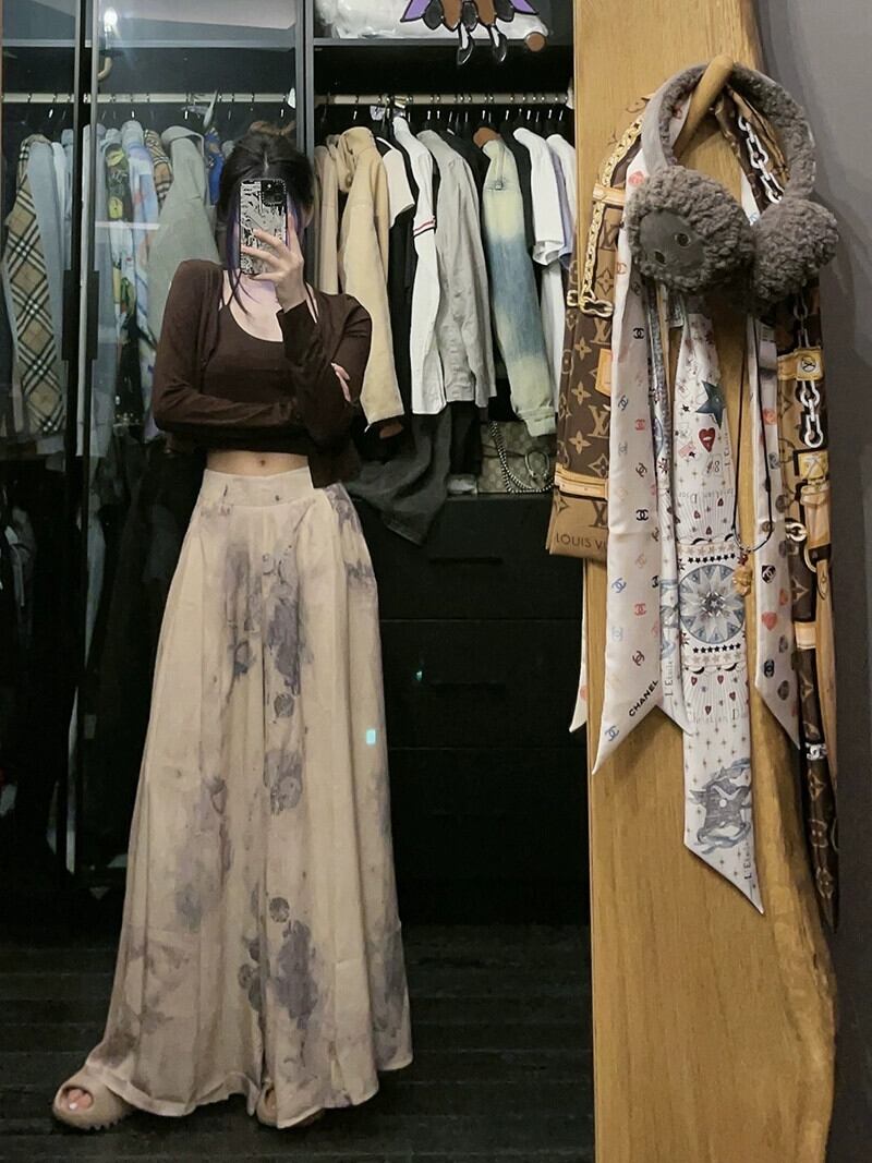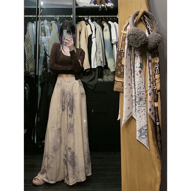 レトロ汚れワイドレッグパンツ女性の夏の 2023 新しいハイウエスト薄型デザインカジュアルモップパンツ ハイウェスト サマー 夏物 missk85115090217