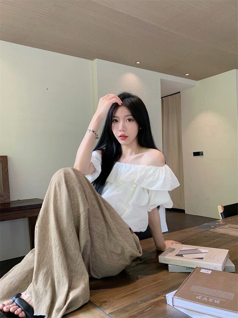 ワンネック半袖シャツレディース夏バージョン2023新しいフリルデザインセンスショートスタイルアウターウェアウエスタンスタイルトップ サマー 夏物 missk8413538999