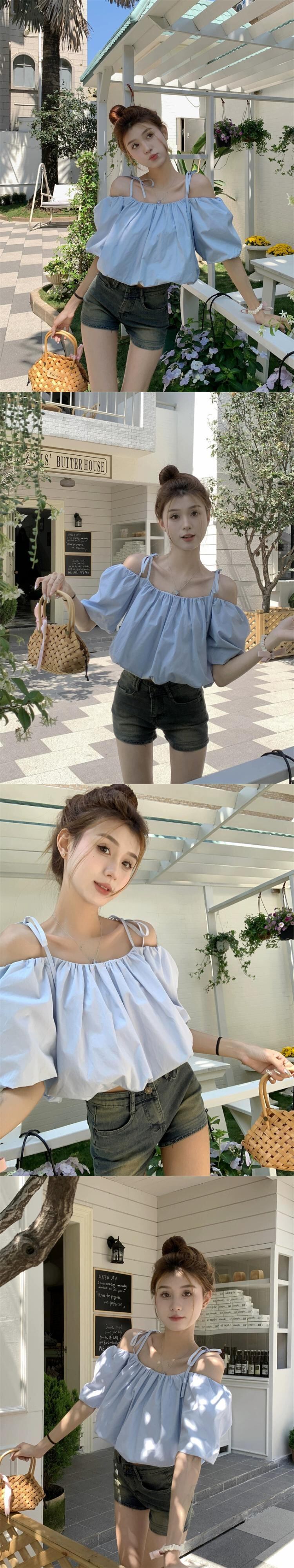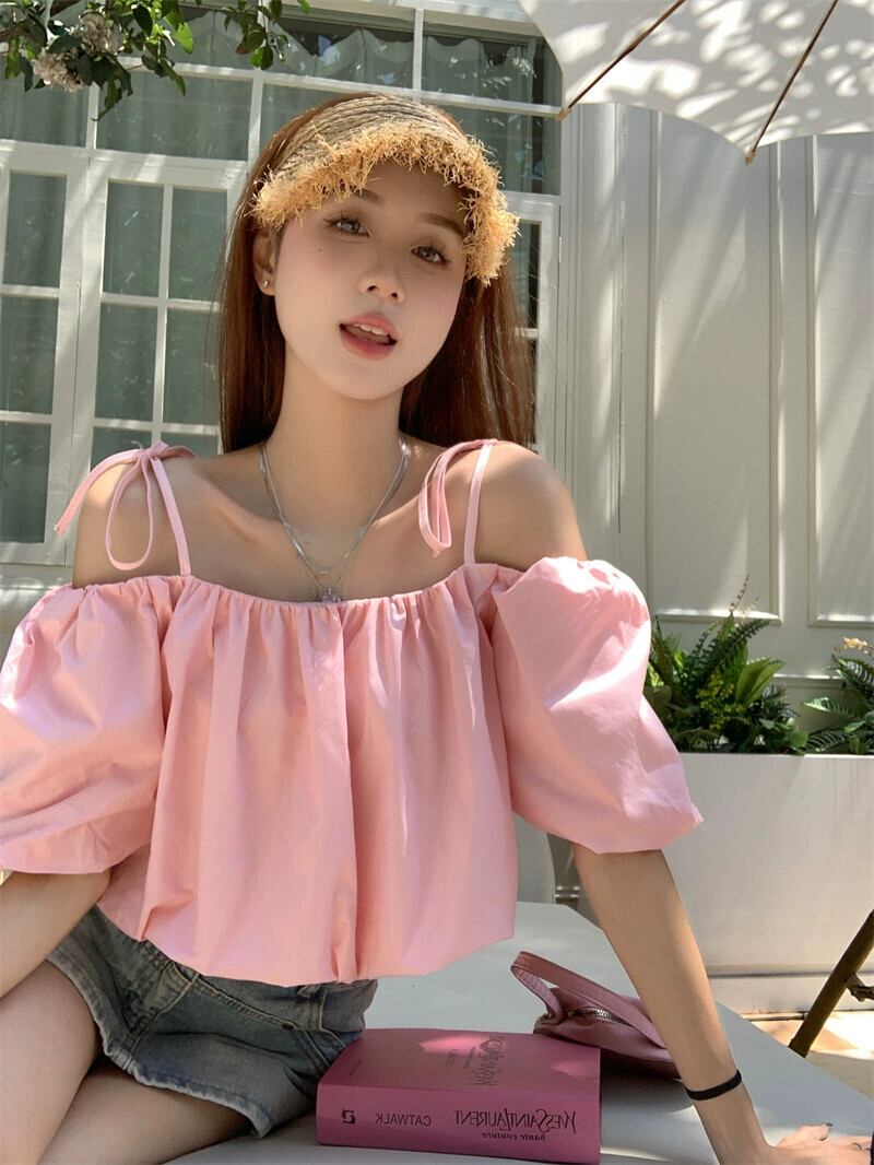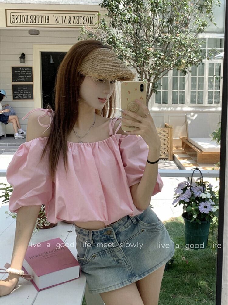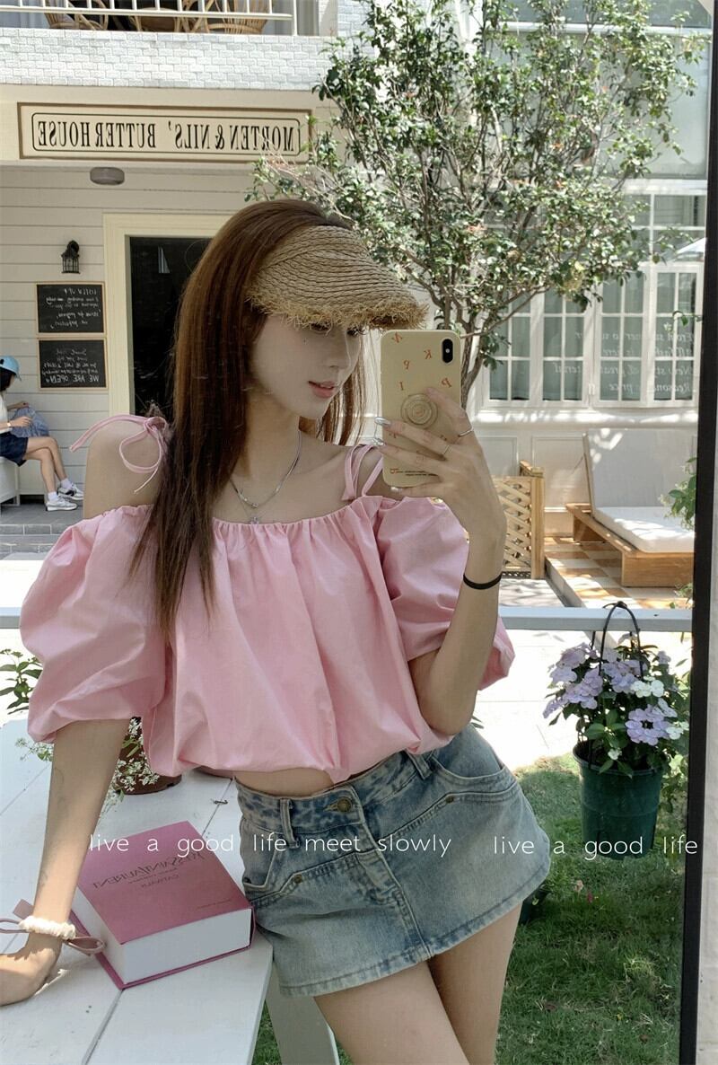 Sweet Girl パフスリーブシャツ レディース 2023夏 ワンショルダー感覚 ゆったり ショートスリング 半袖トップス 大人ガーリー スウィート キュート カジュアル サマー 夏物 missk20934673494