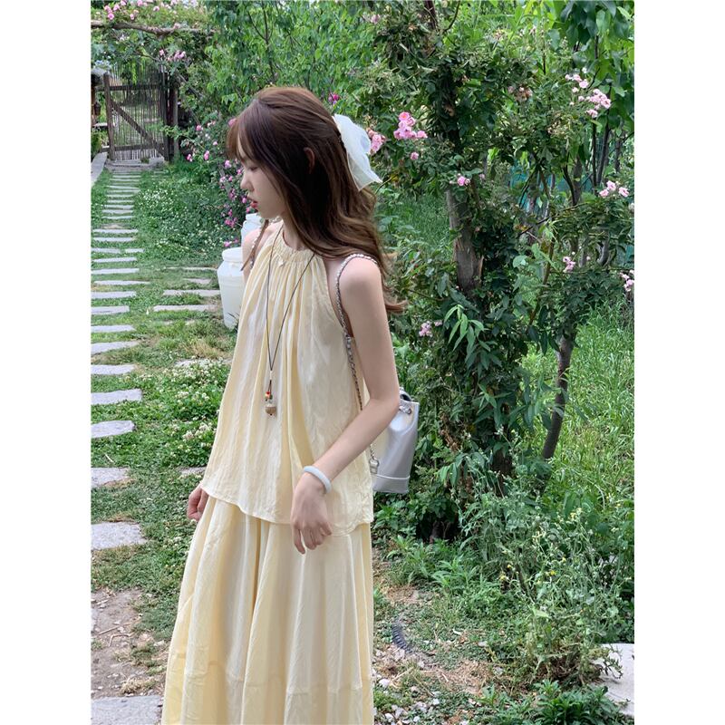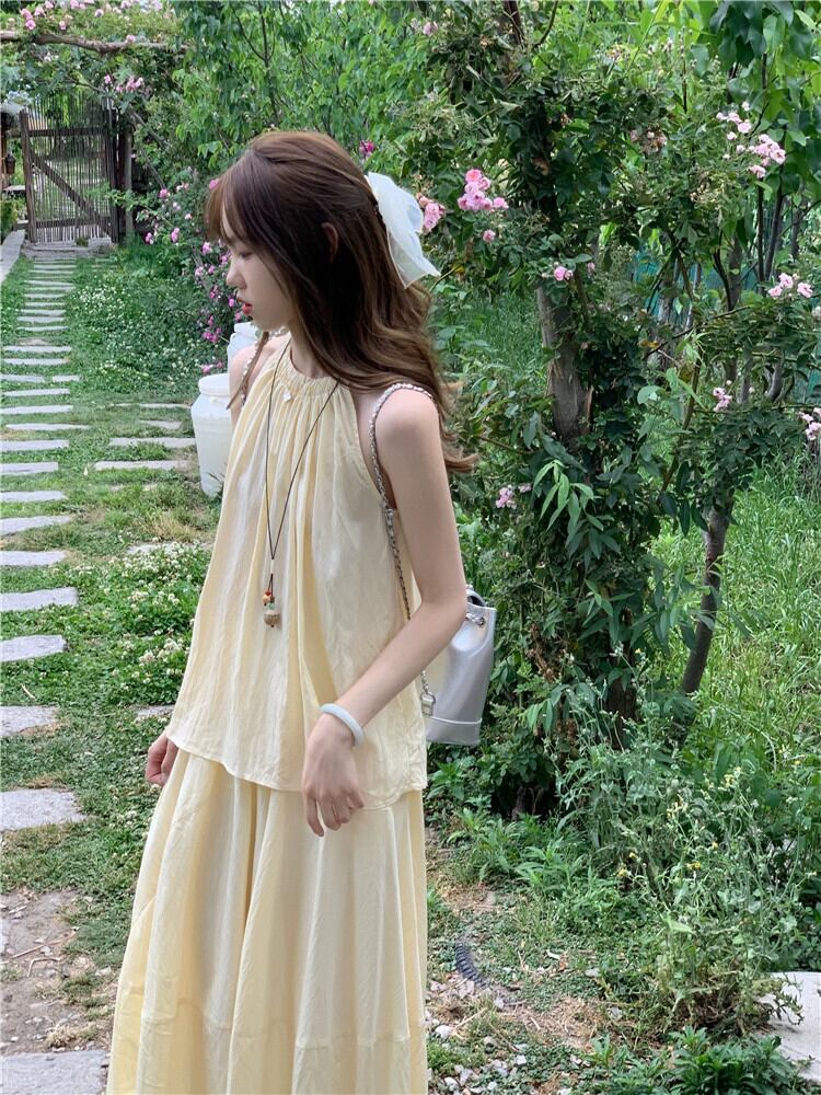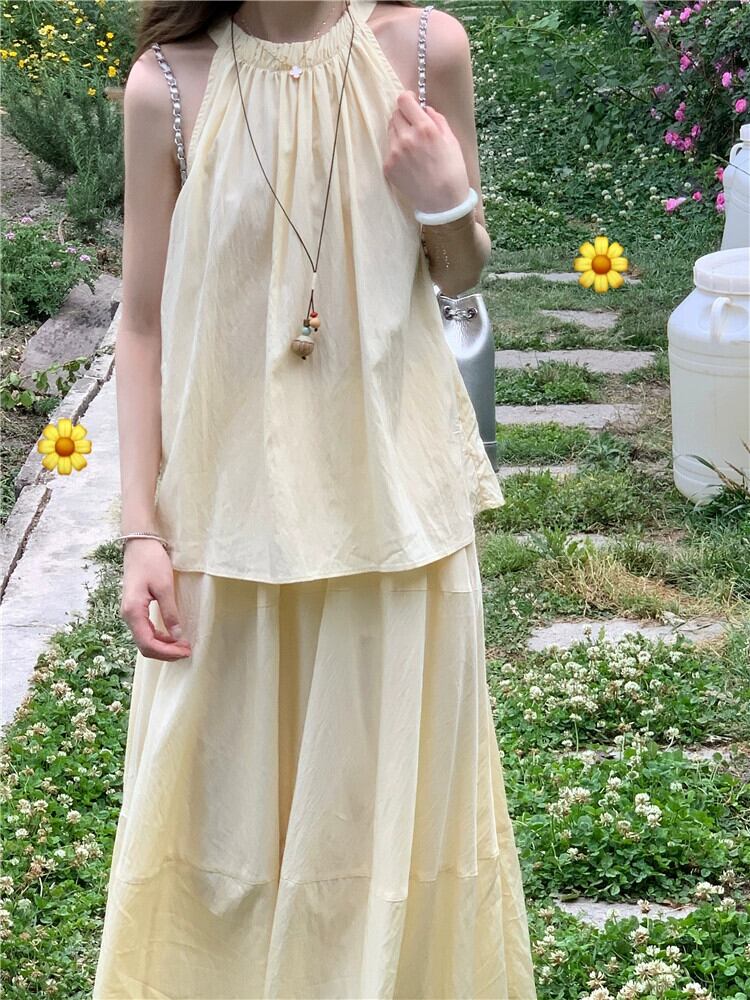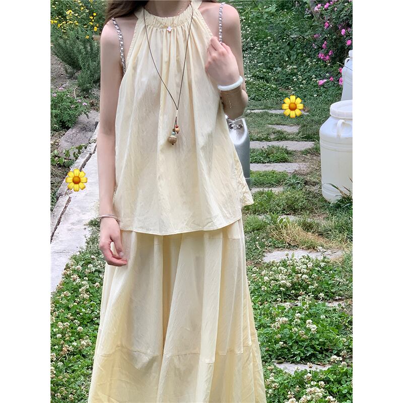 優しい風ぶら下げネックアウターキャミソールハイウエストスリムスカート女性の夏の 2023 新しいファッションスーツ ハイウェスト サマー 夏物 missk48030061393
