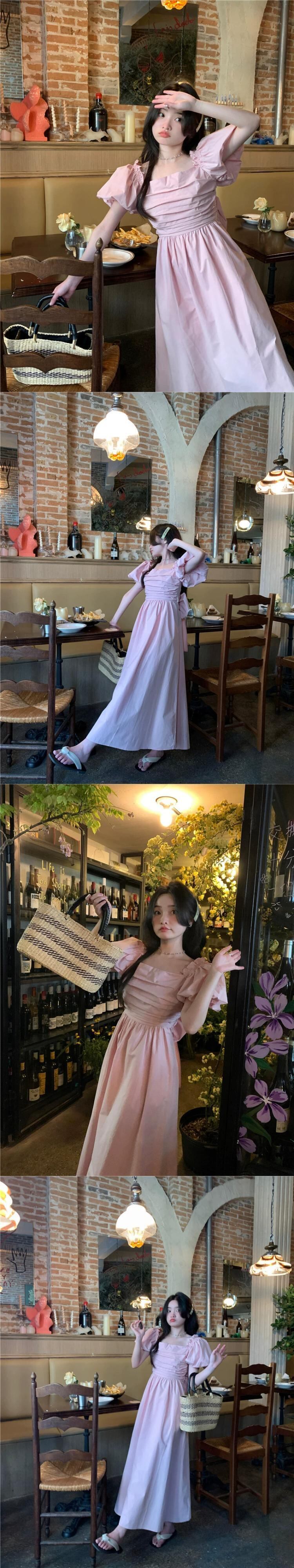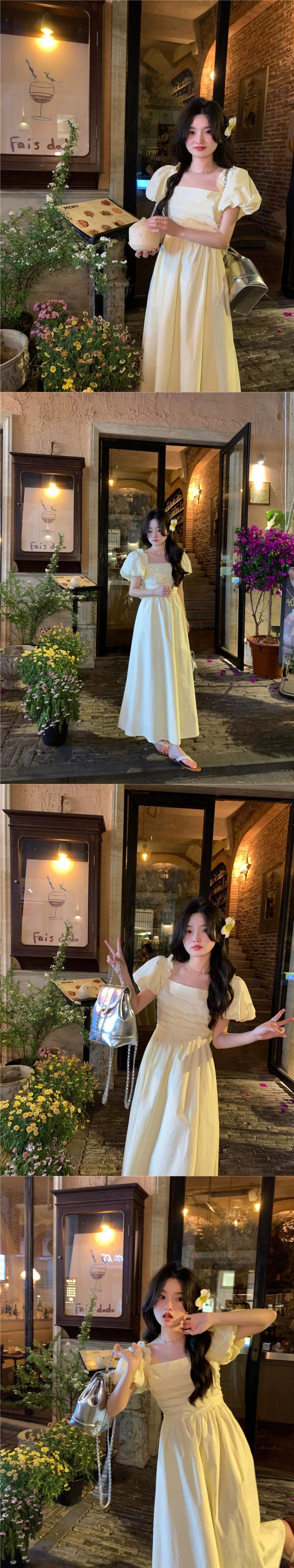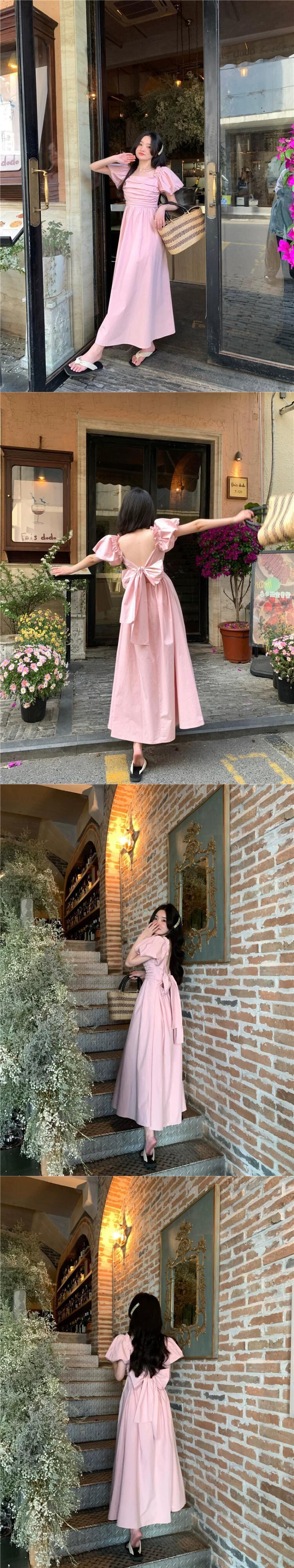 蝶結びバックレスパフスリーブドレス女性の夏の 2023 新しいフレンチデザインセンスウエスト痩身ロングスカート サマー 夏物 missk20430474466