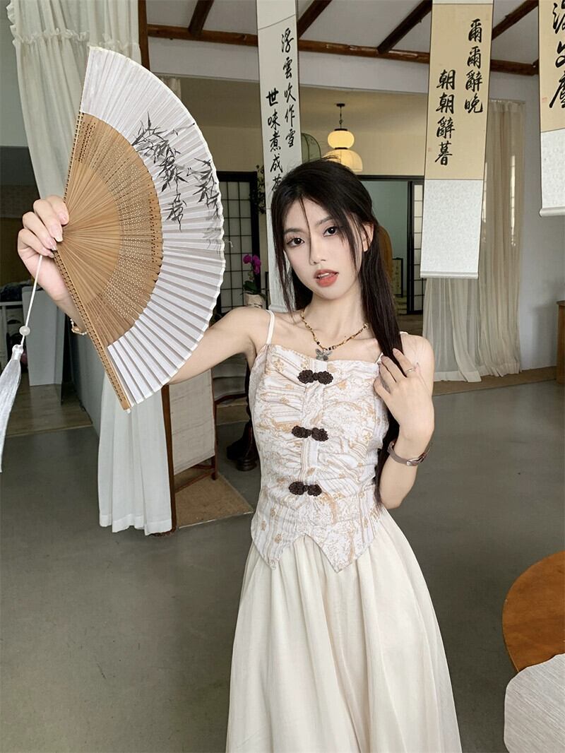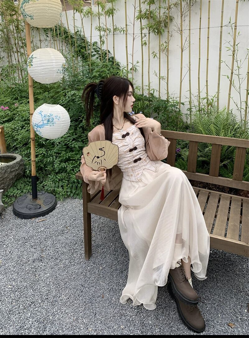 2023 スリーピーススーツ中国風バックルウエストスリムサスペンダー長袖カーディガンメッシュスカート夏 2023 ロング サマー 夏物 missk4766003227