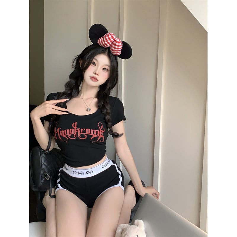アメリカンスタイル Tシャツ レディース 2023年夏新作 イエローレタープリント スリムフィット 薄手ショート半袖トップ サマー 夏物 missk47794006903