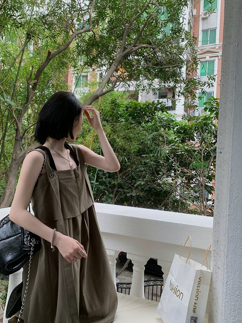 ツーリングウィンドストリーマーサスペンダーカジュアルパンツレディース夏新レトロルーズデザインドレープ感ワイドレッグジャンプスーツパンツ サマー 夏物 missk13895796851