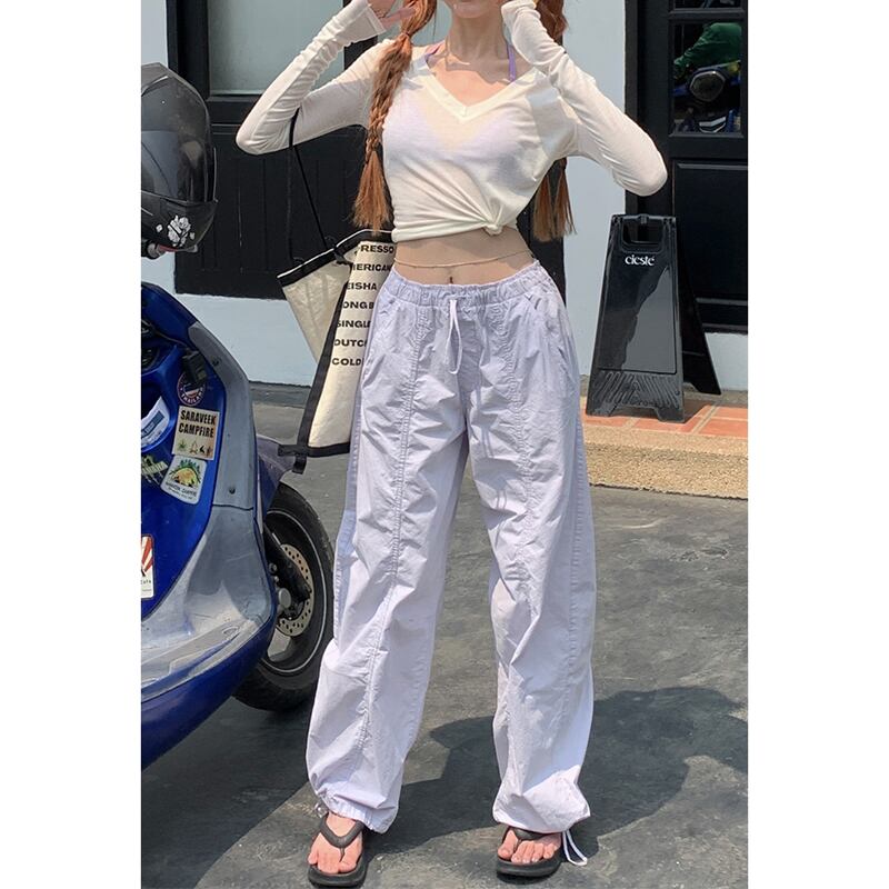 ホットスタイル巾着カジュアルパンツ女性の夏の新バージョンハイウエスト痩身ファッションデザインセンスワイドレッグパンツズボントレンディな ハイウェスト サマー 夏物 ワイドパンツ missk96982833785