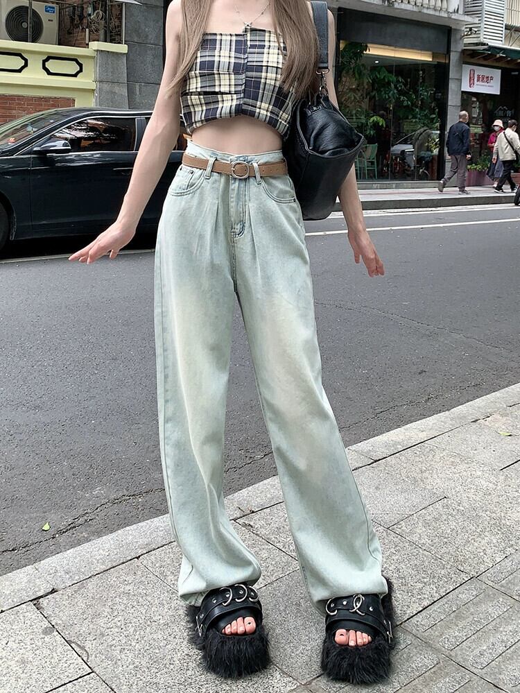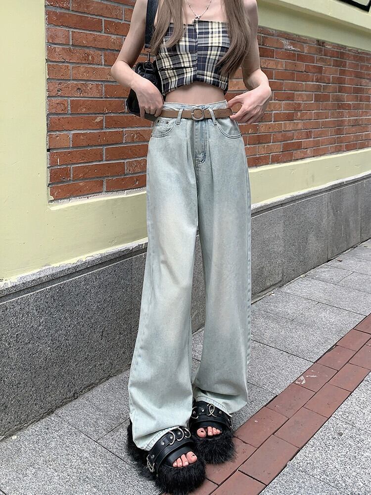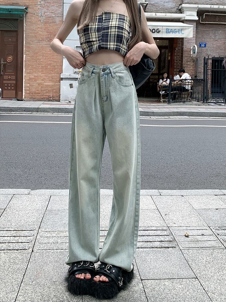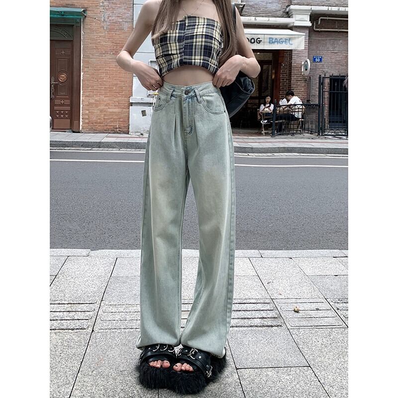 スパイスライトカラージーンズレディース夏新レトロファッションウォッシュオールマッチルーズハイウエストドレープストレートパンツ ハイウェスト レッド サマー 夏物 missk91078974059