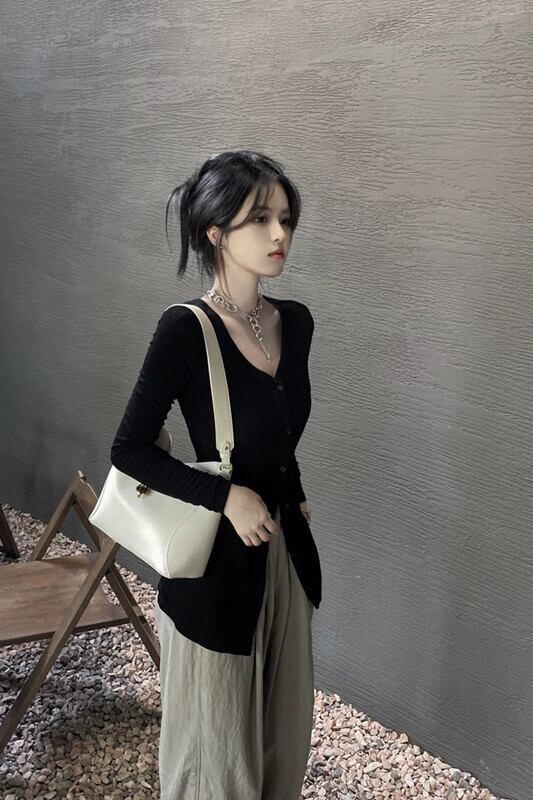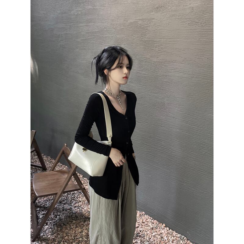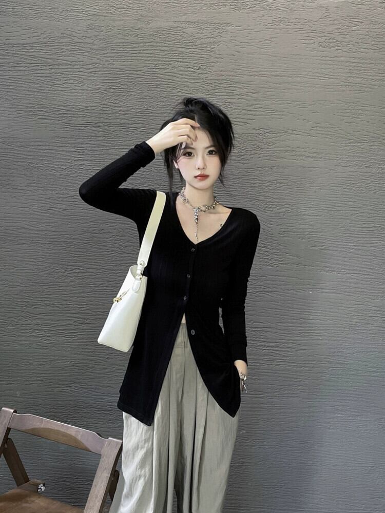 薄い V ネック長袖日焼け止めニットカーディガン女性の夏バージョン 2023 新しいスリムフィットウエスト痩身トップ ロング サマー 夏物 Vネック missk48222677616