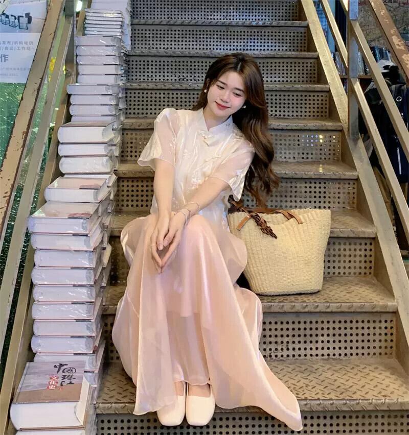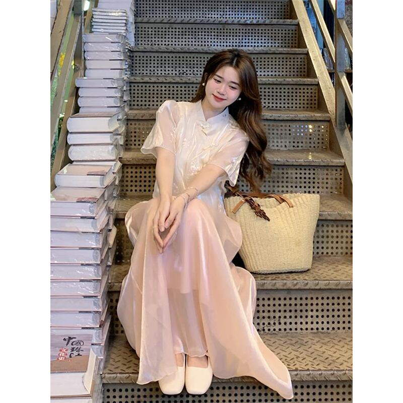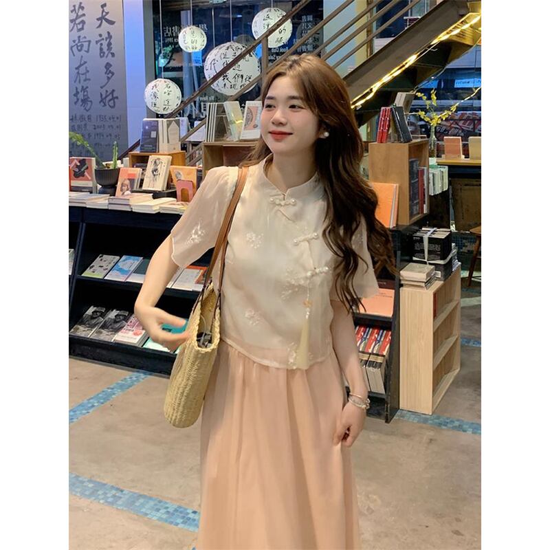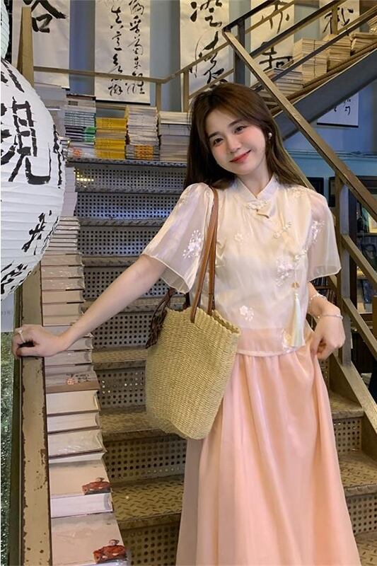 ピンクの国民風の新しい中国風の美しい半袖シャツハイウエストスカート女性の夏の2023新しいファッションスーツ ハイウェスト サマー 夏物 missk98108126173