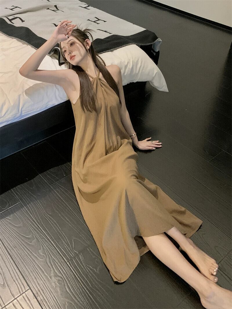 2023 夏の新しいフレンチホリデースタイルのデザインセンスニッチルーズハンギングネックノースリーブミッドレングスドレス婦人服 サマー 夏物 missk72494161766