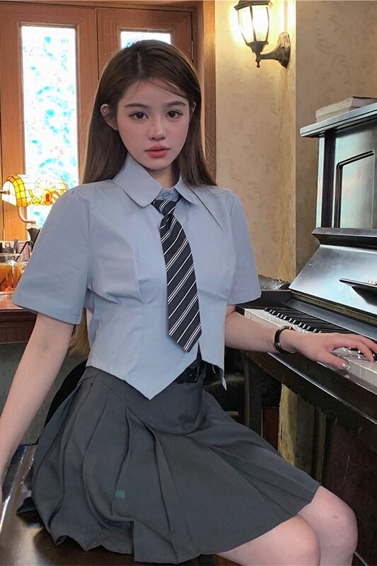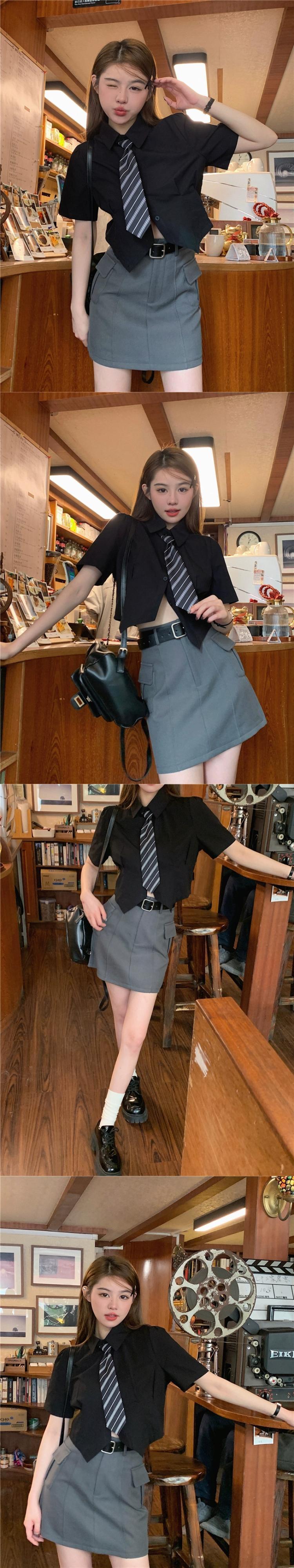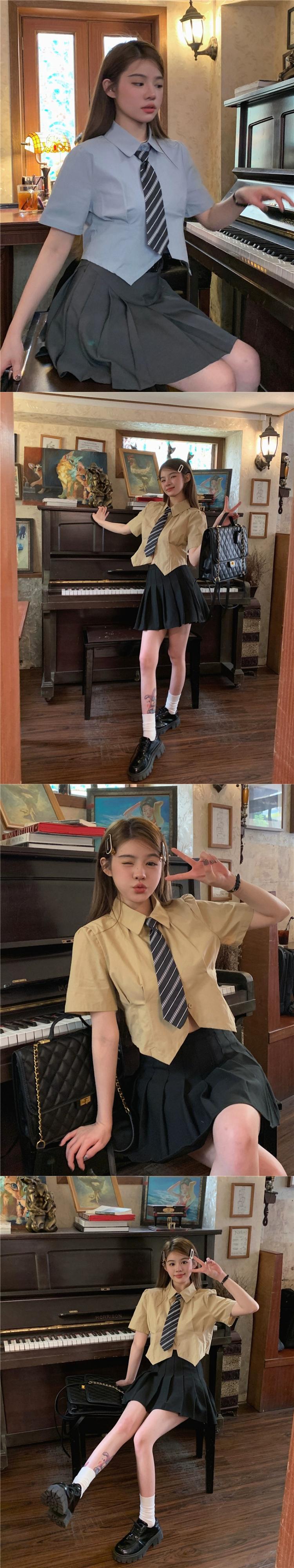 スタイルポロカラー半袖シャツレディース2023年夏新デザインセンスニッチ不規則ショートトップ サマー 夏物 missk73345876323