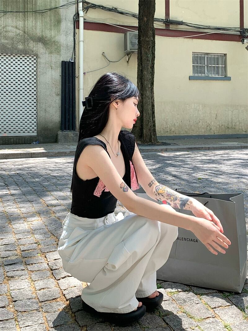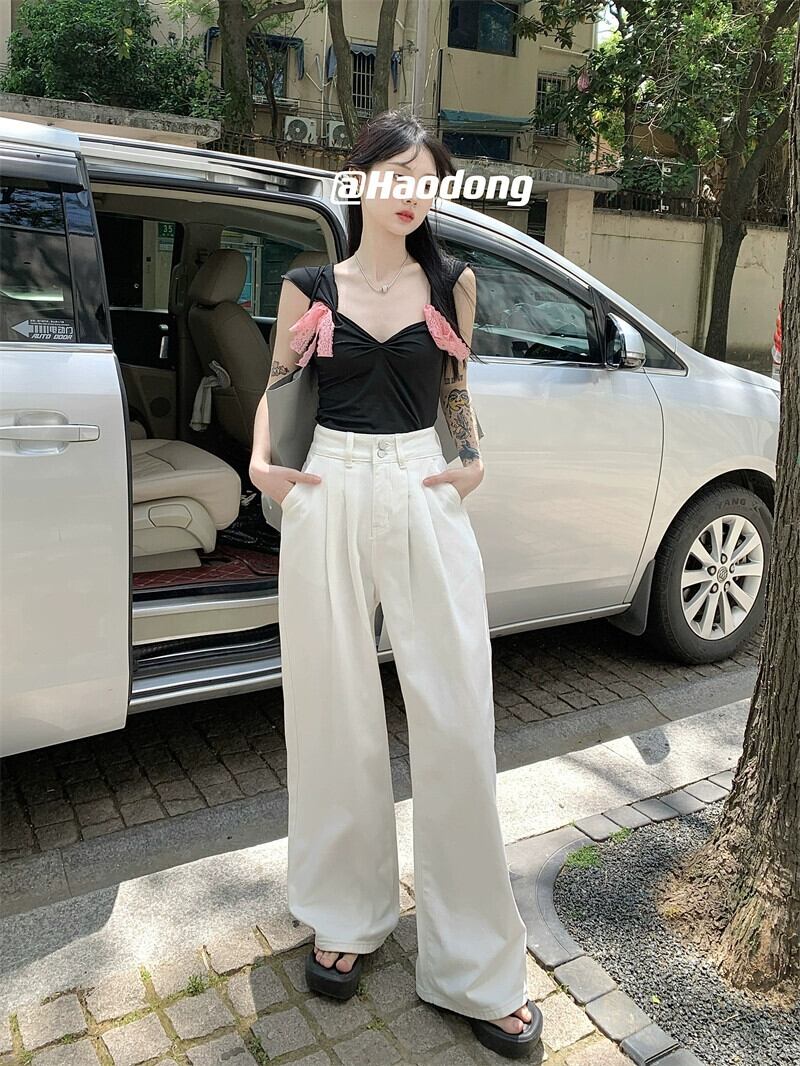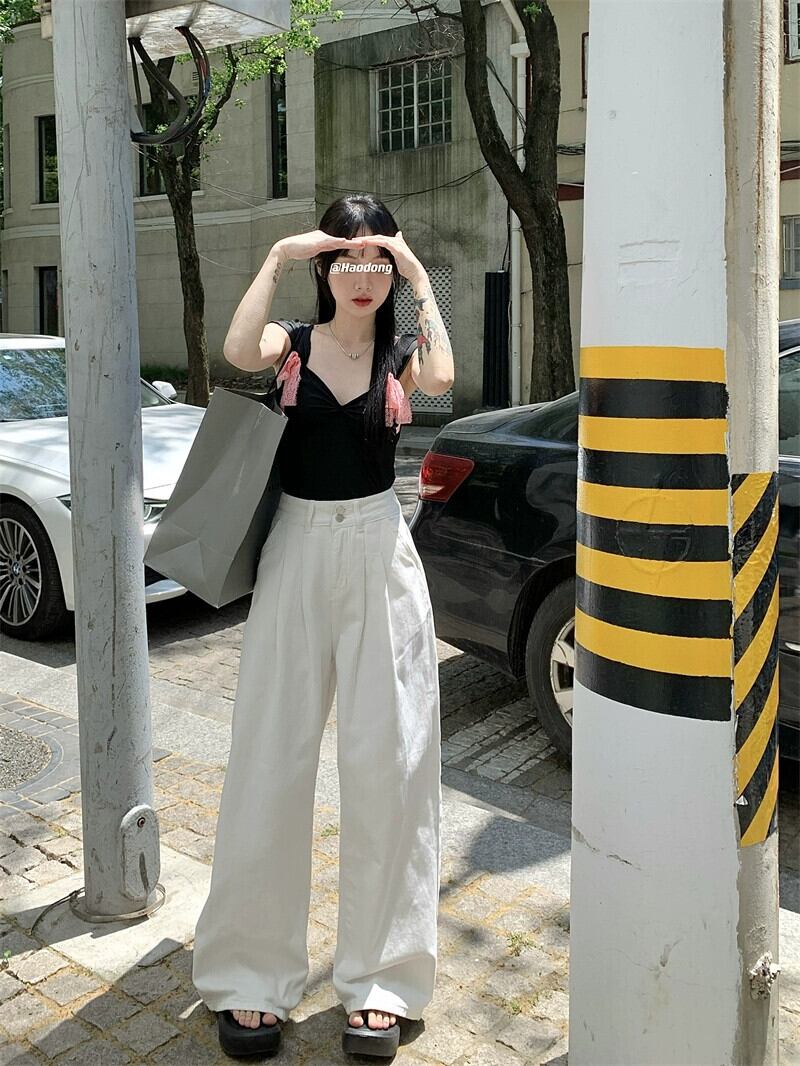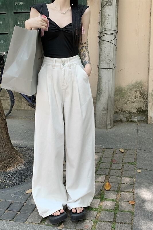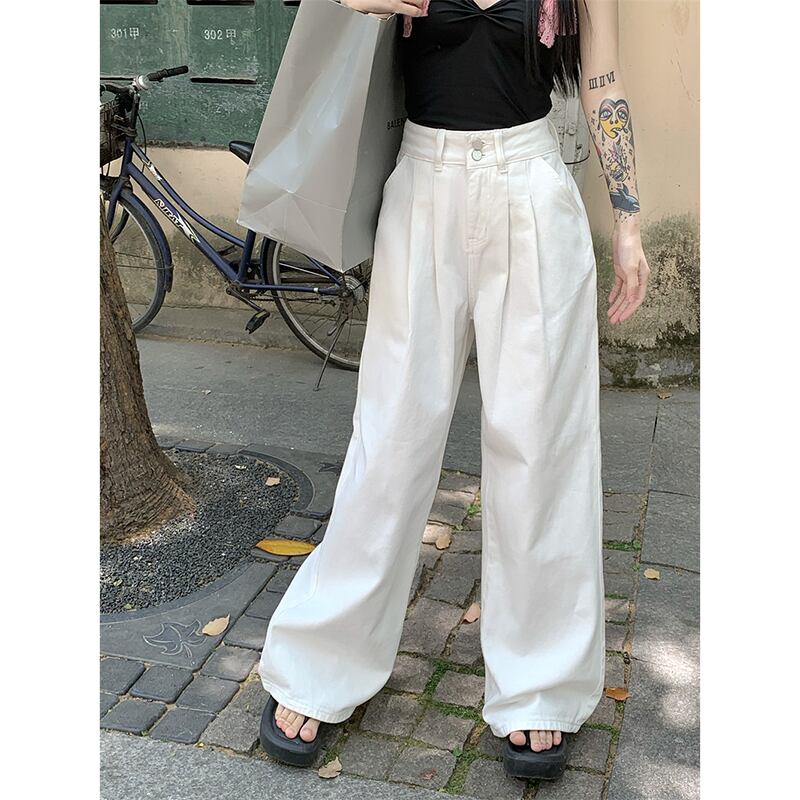 ホワイトストレートジーンズレディース夏バージョン2023新しいハイウエストスリミングオールマッチルーズワイドレッグパンツイン ハイウェスト サマー 夏物 missk92314575290