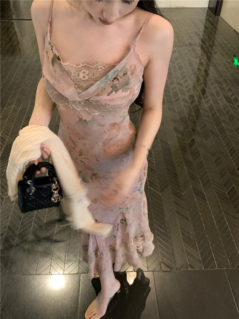 レース花サスペンダードレス女性の夏の 2023 新しいフレンチレトロスリムスリムマーメイドドレス サマー 夏物 花柄 missk54003514102