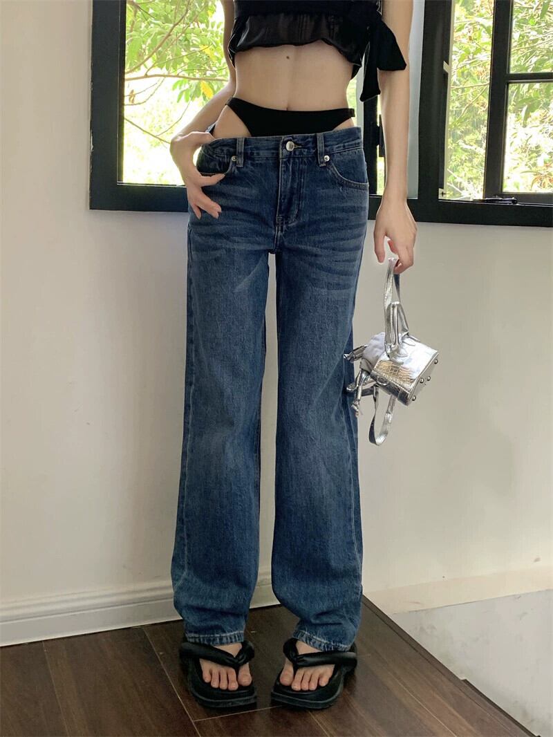 ローウエスト ビキニ ステッチ ジーンズ レディース 夏の新しいニッチ デザイン パンツ ストレート スリム ワイドレッグ パンツ サマー 夏物 missk91833610783
