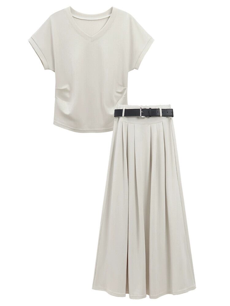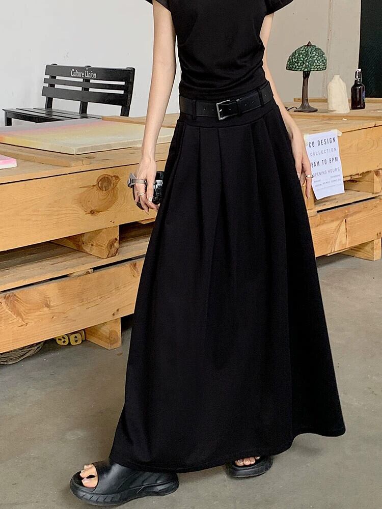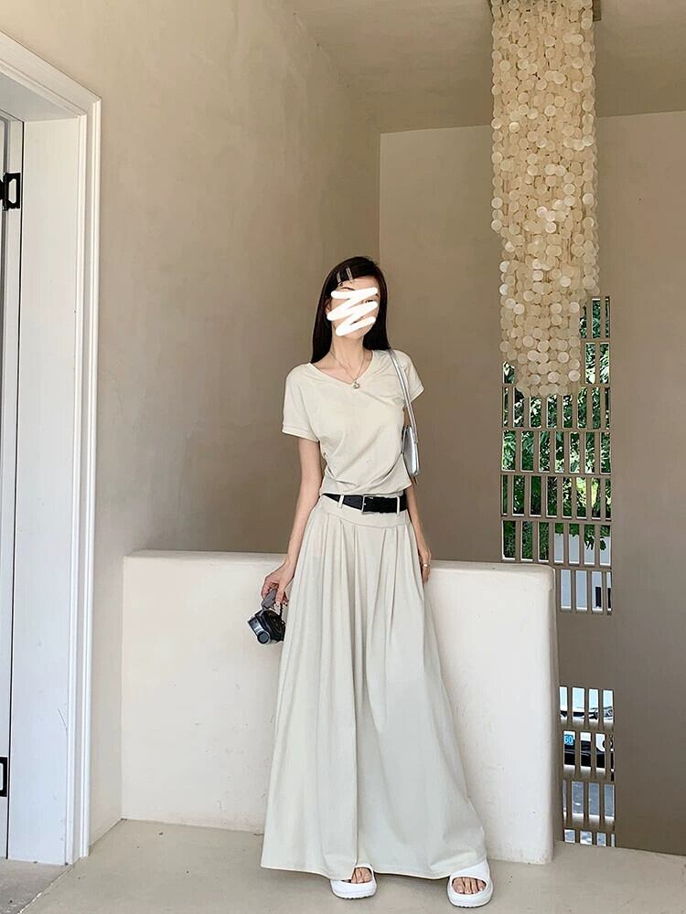 シックなプリーツアプリコットスカートの女性の夏の新しい弾性ハイウエスト気質ファッションハイエンド A ラインロングスカート ハイウェスト エラスティック 伸縮 サマー 夏物 Aライン missk72698236735