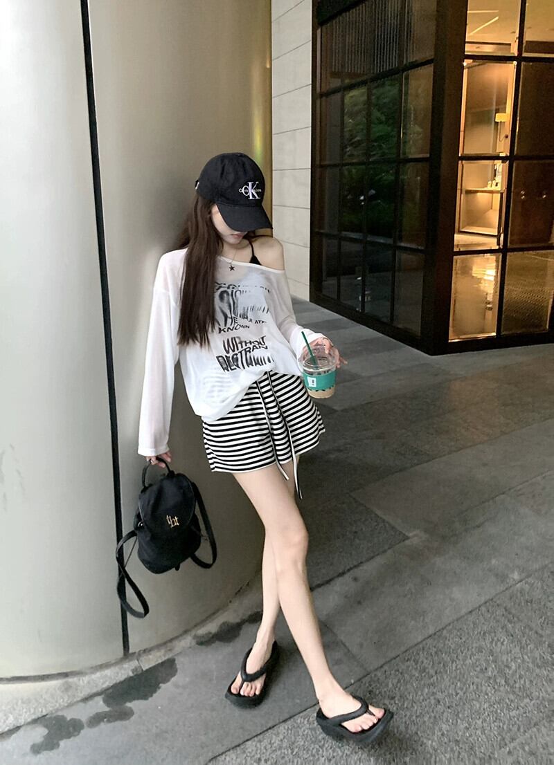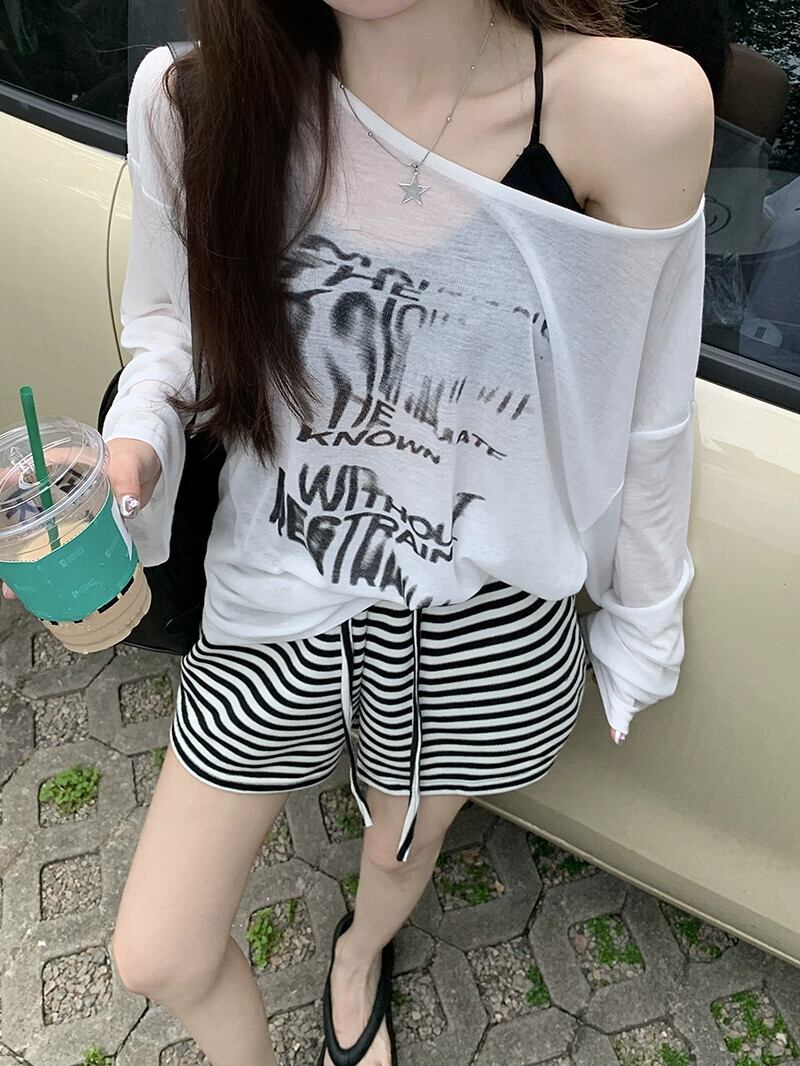 純粋な欲望を企むストラップレス日焼け止め Tシャツ夏新イン怠惰なルーズデザイン長袖ブラウストップ婦人服 ロング サマー 夏物 missk26255789885