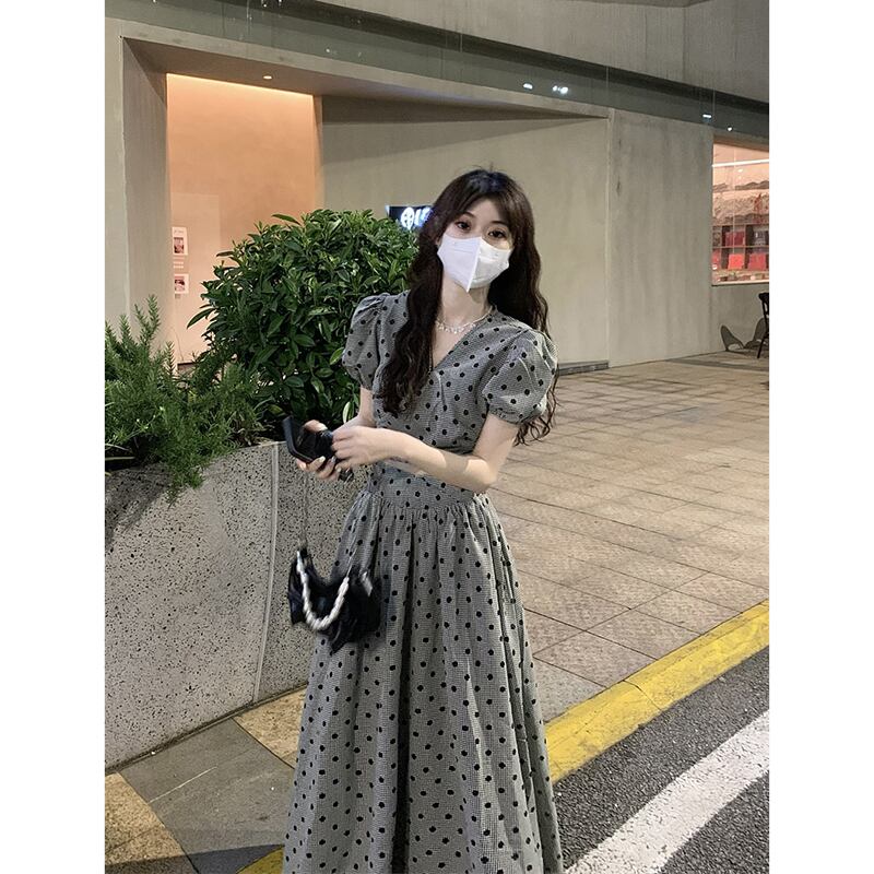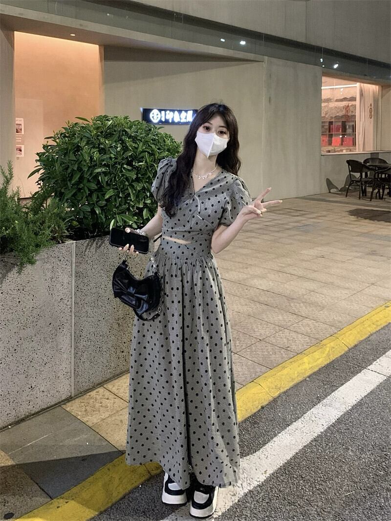 フレンチウェーブポイントウエストショートパフスリーブトップハイウエストスカート女性の夏の2023新しいファッションスーツ ハイウェスト サマー 夏物 missk63672549915