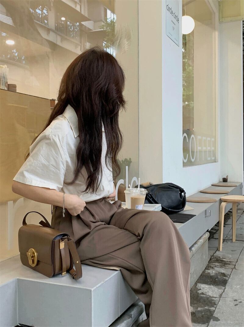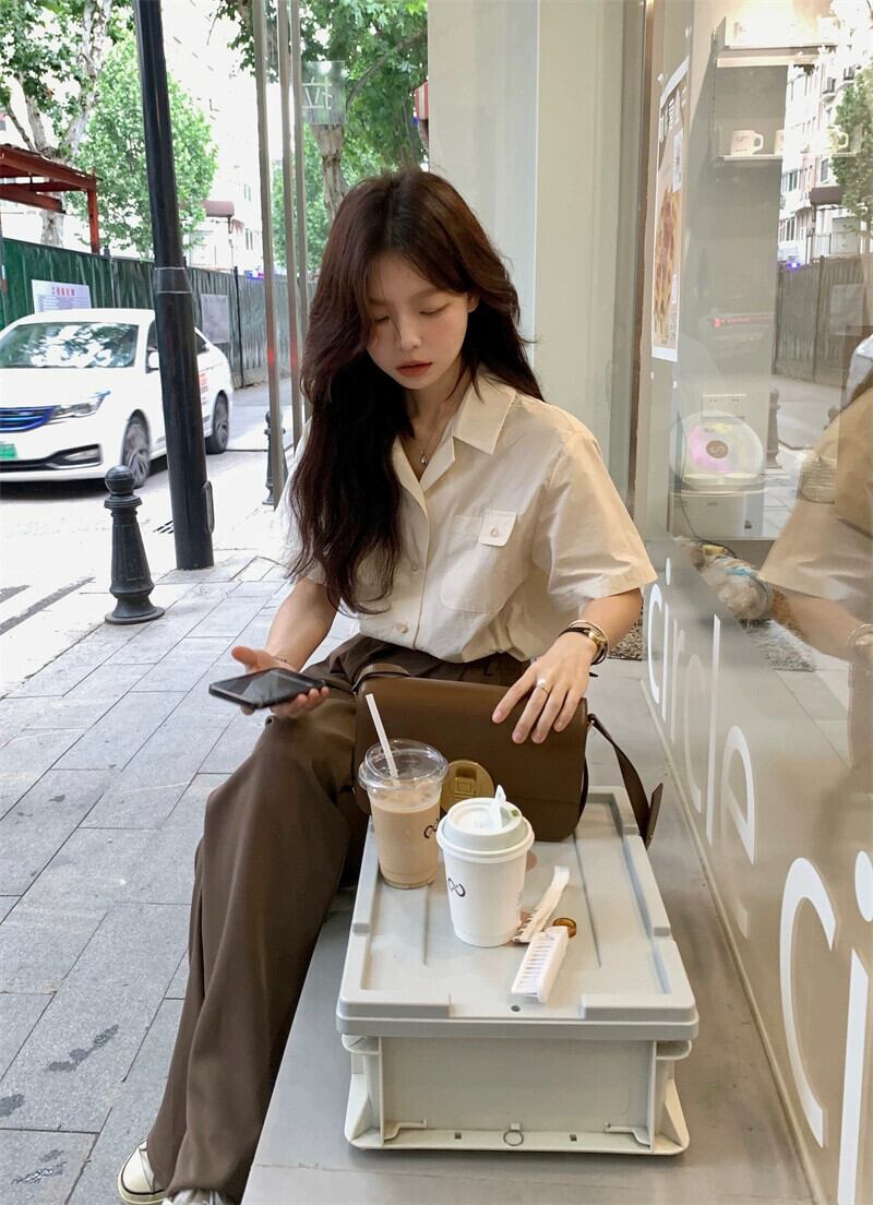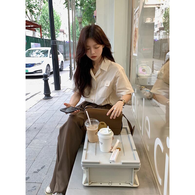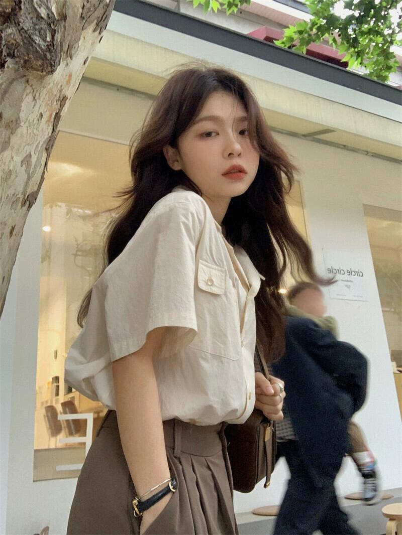 レトロ半袖シャツレディース2023年夏新作無地オールマッチベーシックモデルシンプルルーズラペルカーディガントップ サマー 夏物 ソリッドカラー missk14453494119