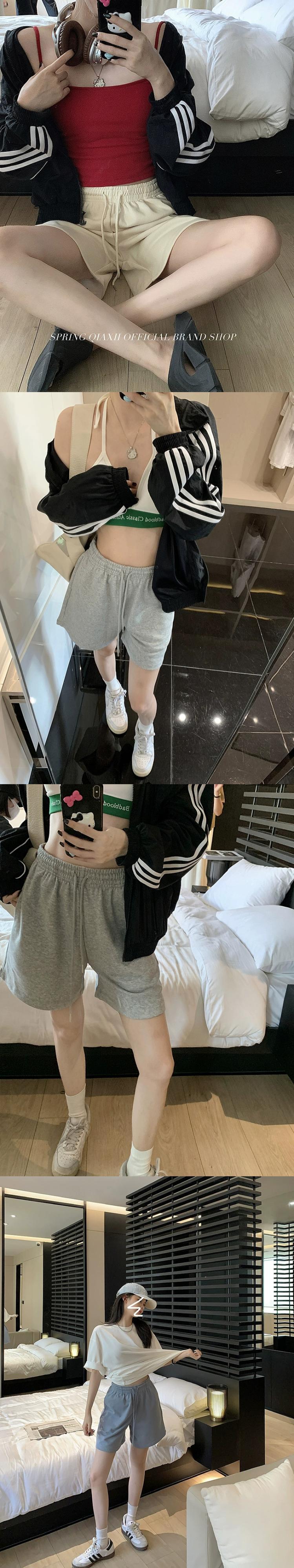 ゆったりスポーツカジュアルパンツレディース夏バージョン2023新しい弾性ハイウエスト5点ショーツ無地オールマッチパンツ ハイウェスト エラスティック 伸縮 サマー 夏物 ブルマー ソリッドカラー missk93503131674