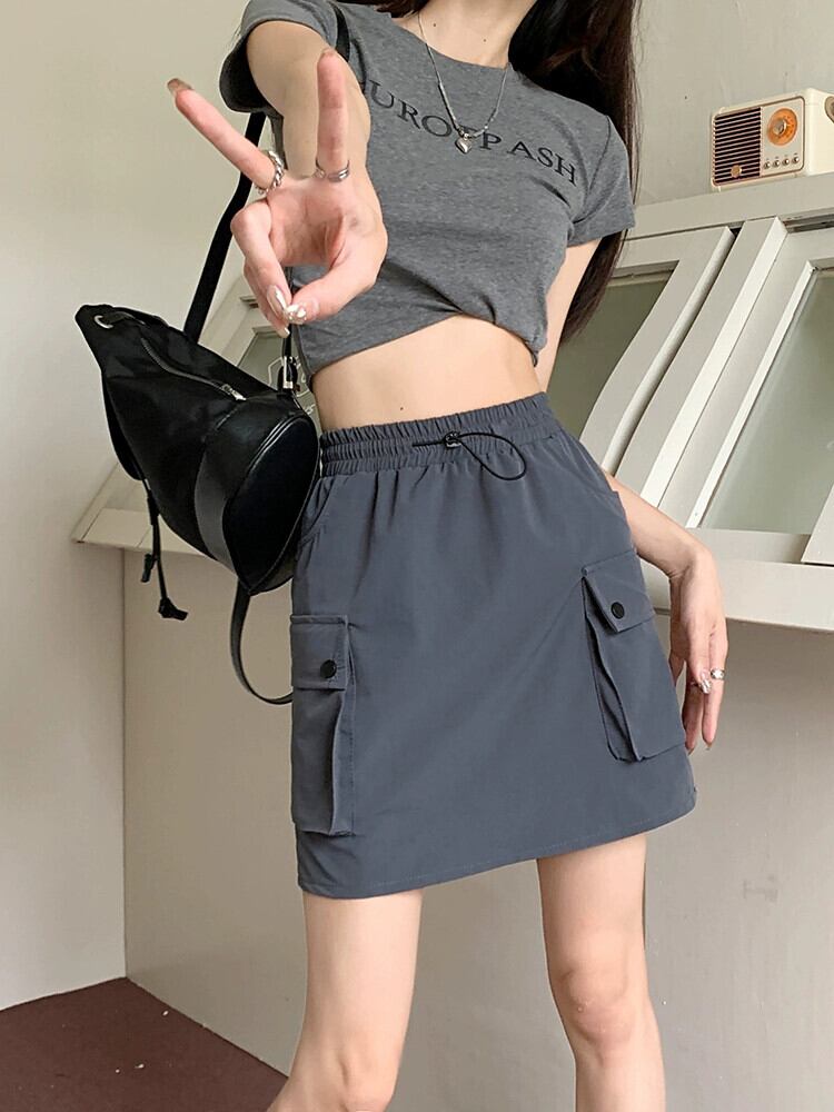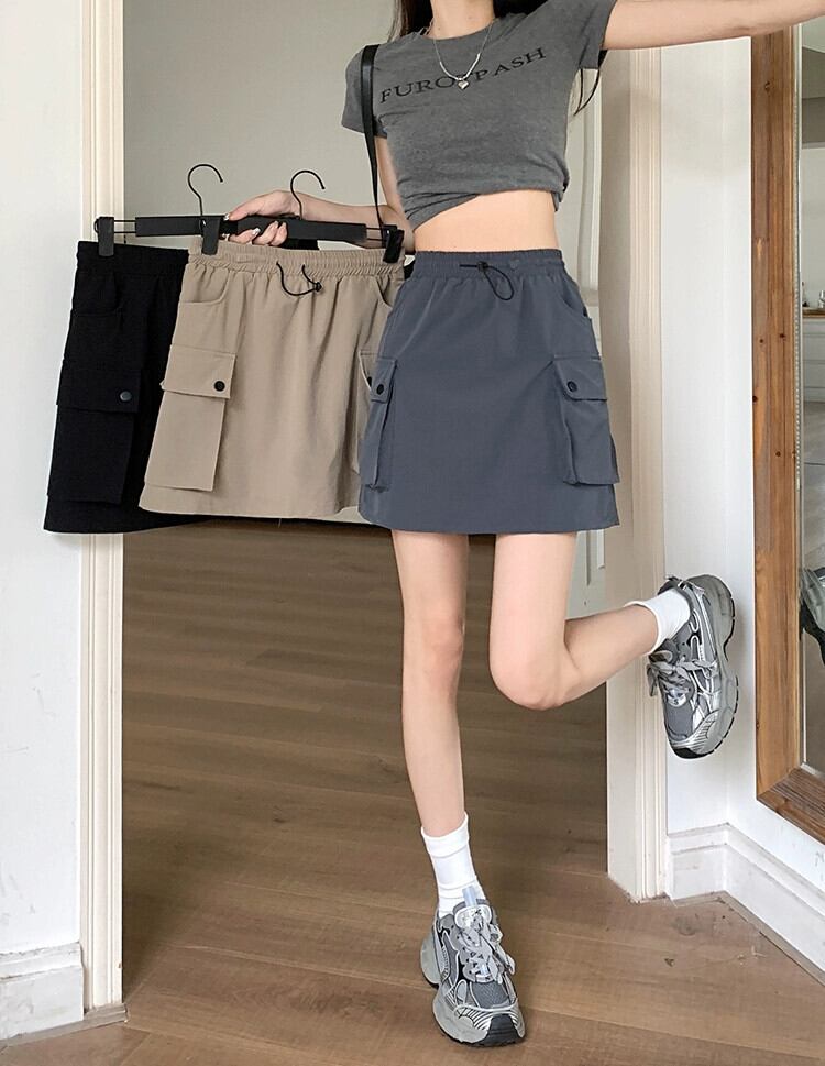 弾性ウエスト巾着ツーリングスカート女性の夏の 2023 新しいスパイシーでクールなハイウエストデザインセンスニッチ A ラインスカート ハイウェスト エラスティック 伸縮 サマー 夏物 Aライン missk9720750861