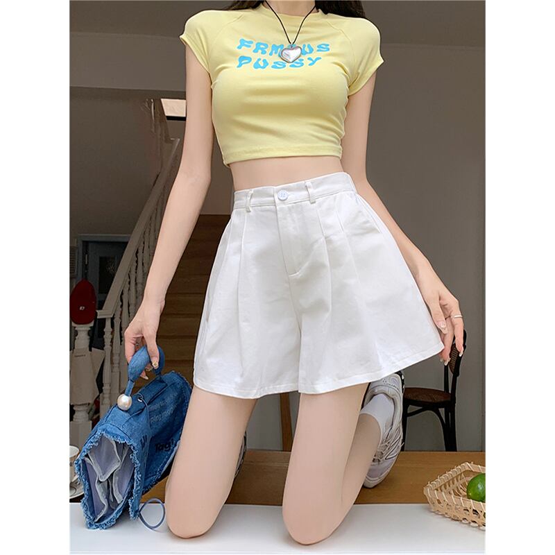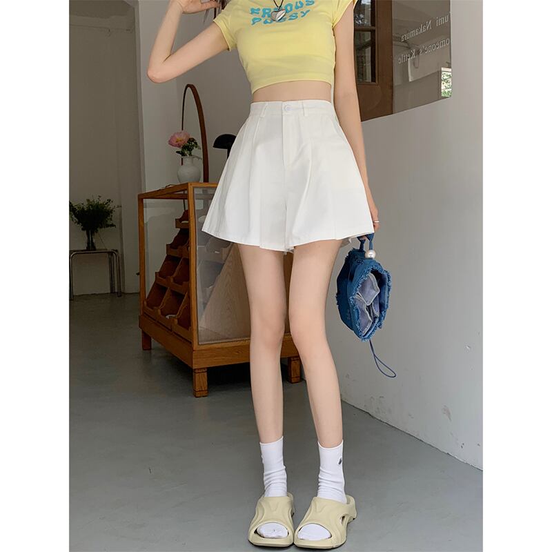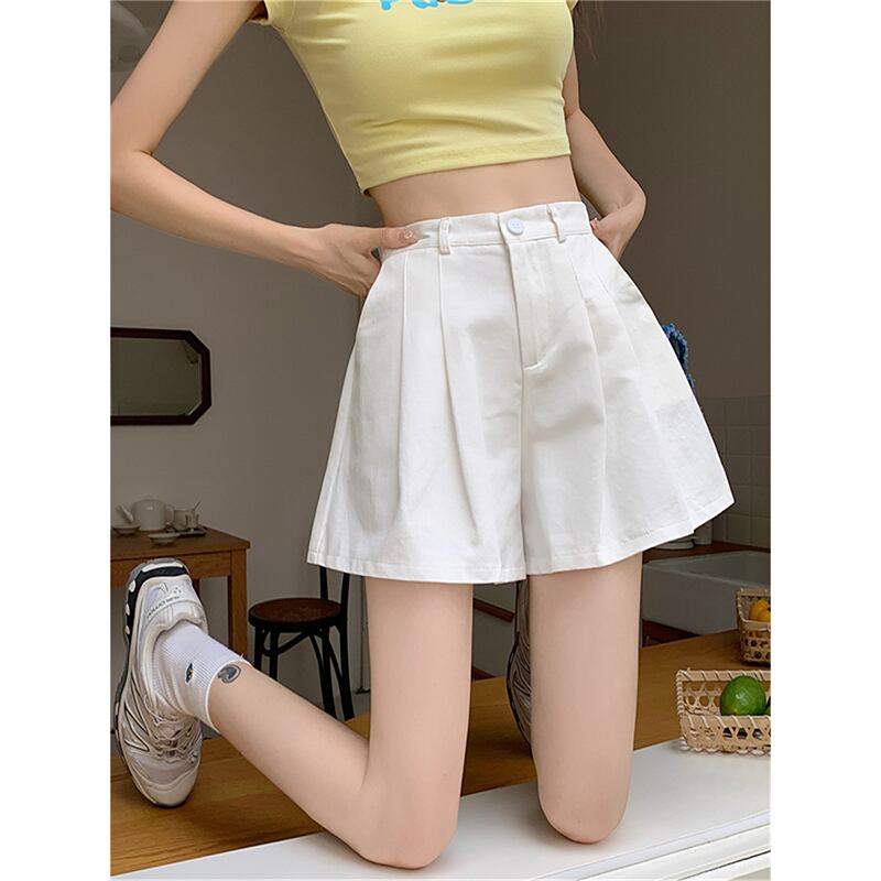 ホワイトカジュアルショートパンツレディース2023夏新作ハイウエスト着痩せオールマッチシンプルアウターAラインワイドレッグパンツシック ハイウェスト サマー 夏物 ショーツ ブルマー missk17256515446