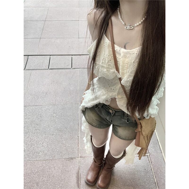 レトロ中空レースサスペンダードレス女性の夏 2023 センスニッチウエストスリムロングスカート サマー 夏物 missk49235289110