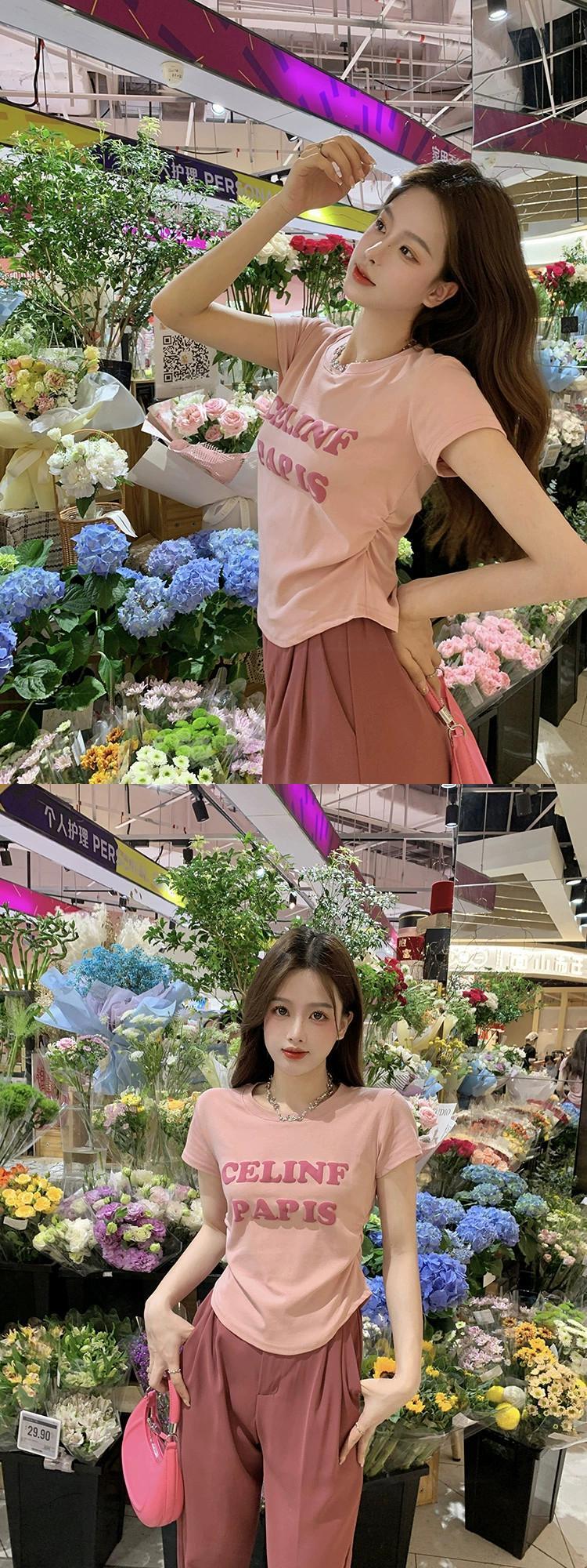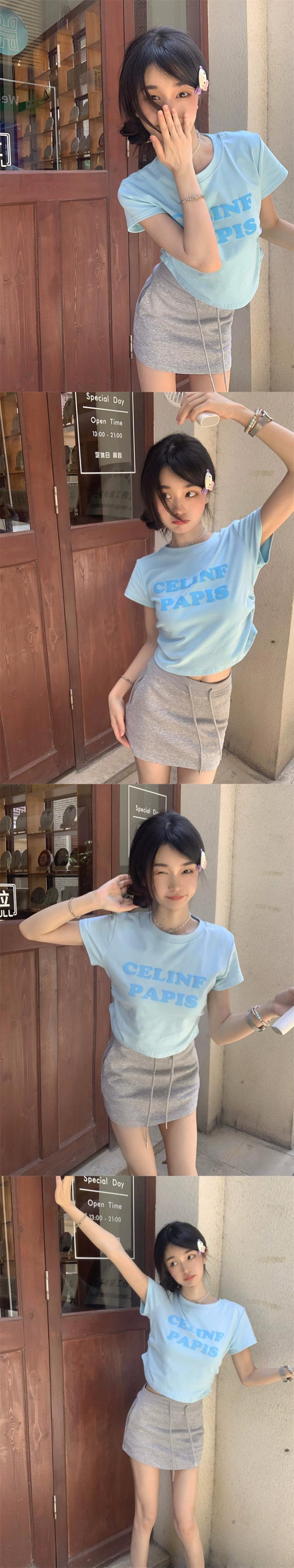 フォームレター半袖 Tシャツ女性の夏のドーパミンウェアスリムフィットショートセクションプリーツデザインボトリングシャツトップ サマー 夏物 missk23967499719