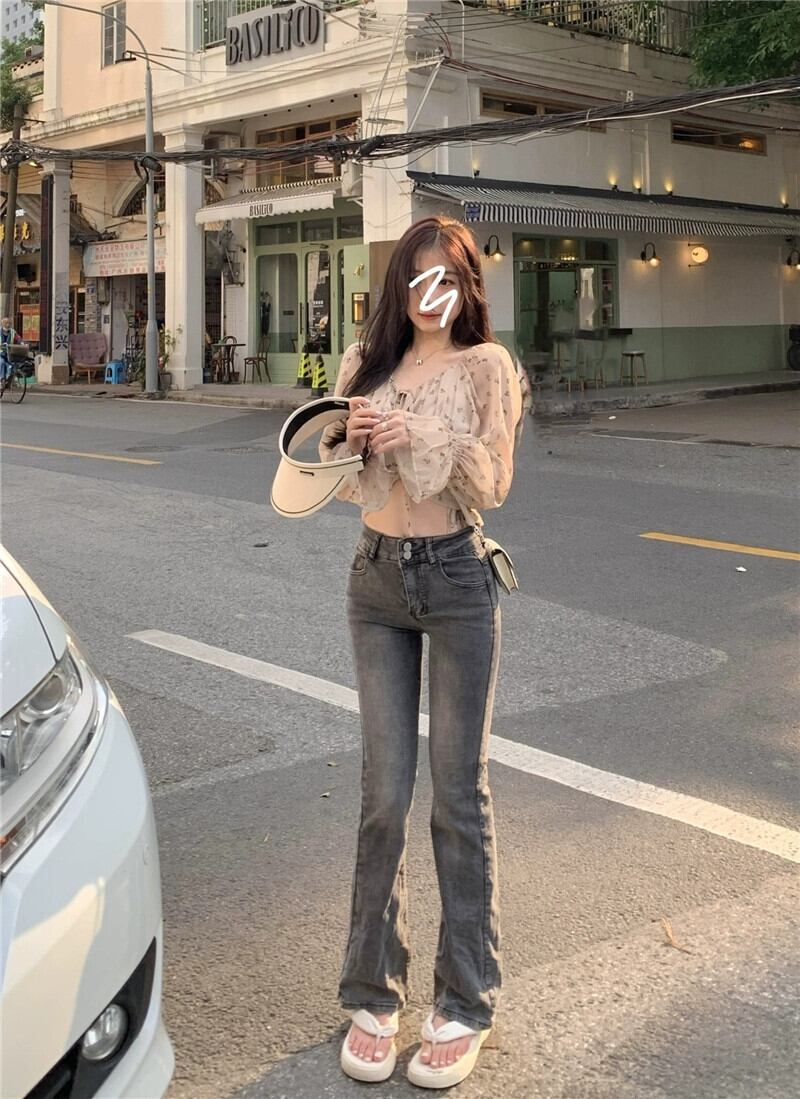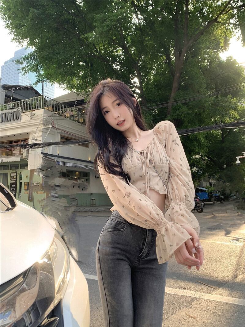 夏の 2023 新しいフランスの気質花ショートセクションへそウエストウエストスリムトランペットスリーブシフォンシャツ婦人服 サマー 夏物 花柄 missk52092531749