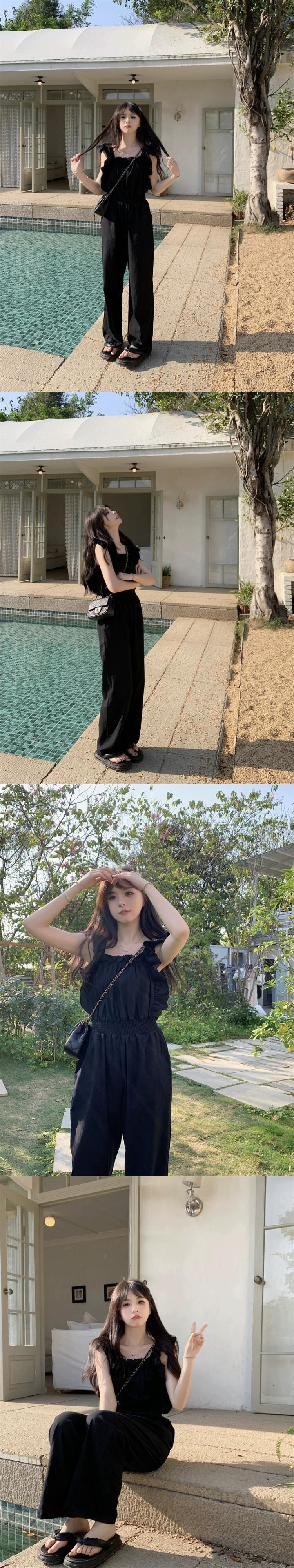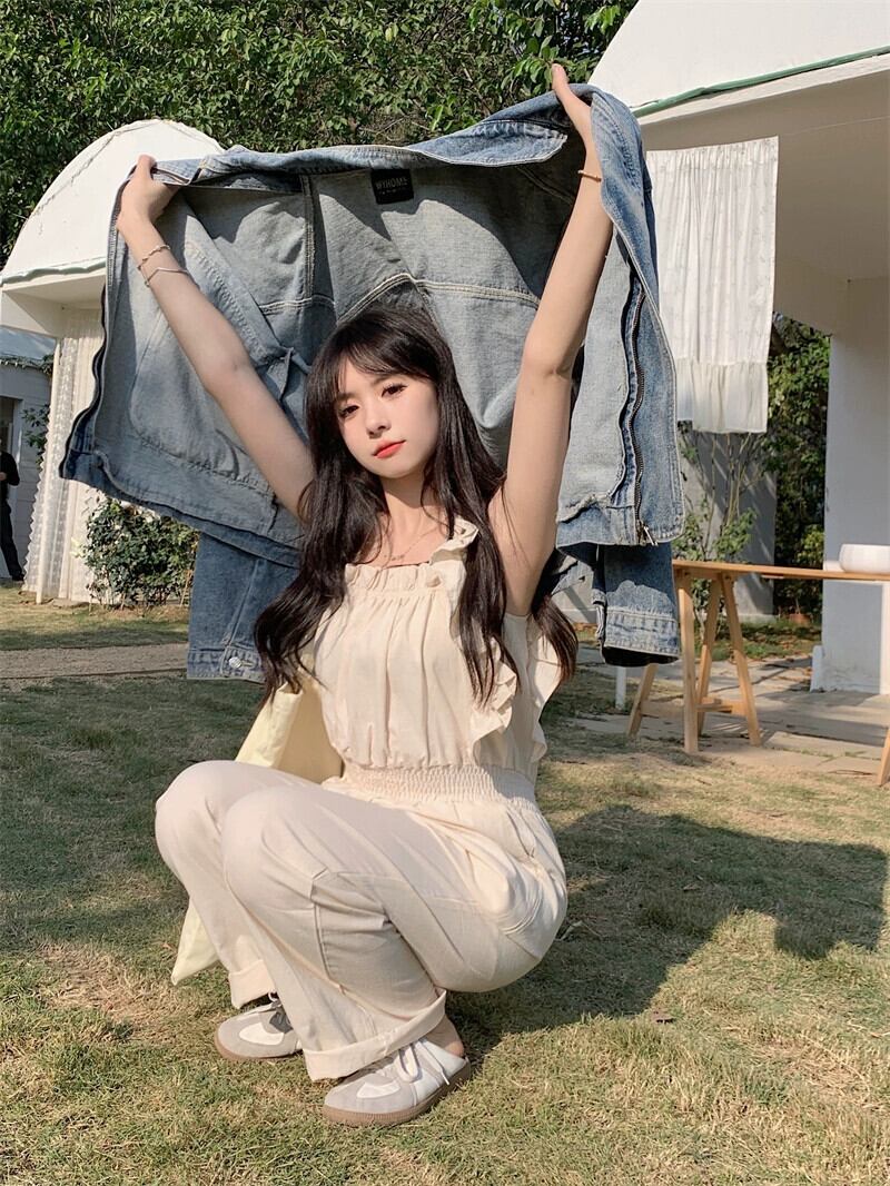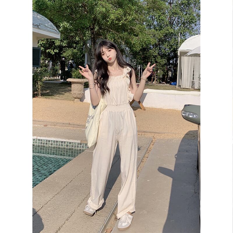 Feifei スリーブワイドレッグジャンプスーツの女性の夏 2023 新しいフレンチスタイルニッチデザインセンスウエスト痩身カジュアルパンツ サマー 夏物 missk40435756944