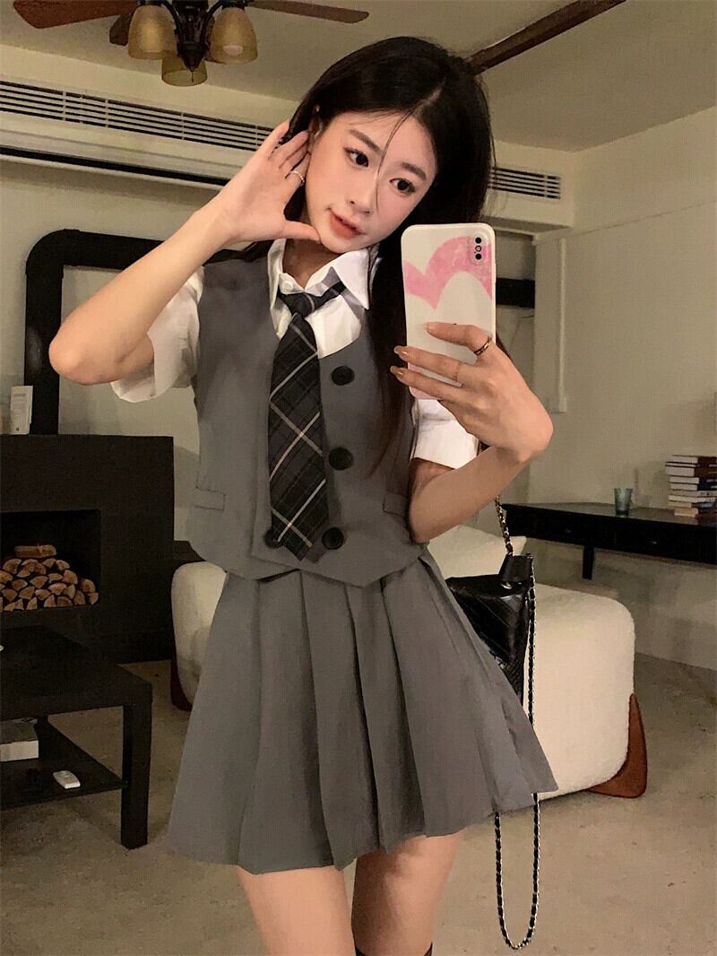 スタイルハイエンドの外側の感覚チョッキベスト + シャツ + プリーツスカート女性の夏の 2023 新しいファッションスーツ サマー 夏物 missk83675322620