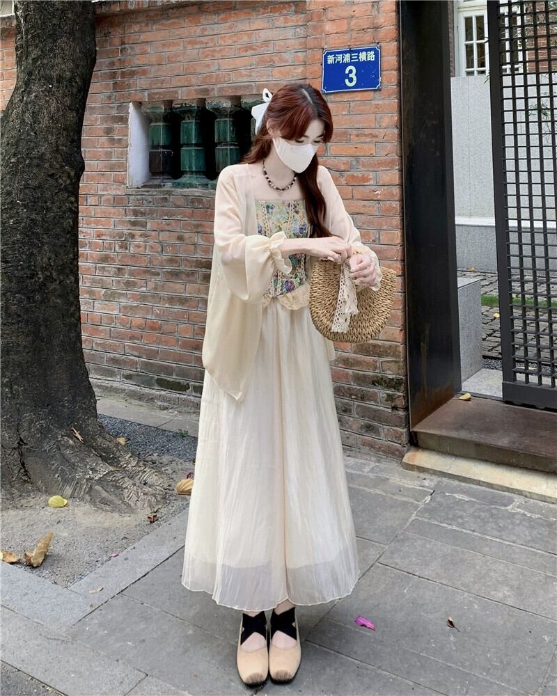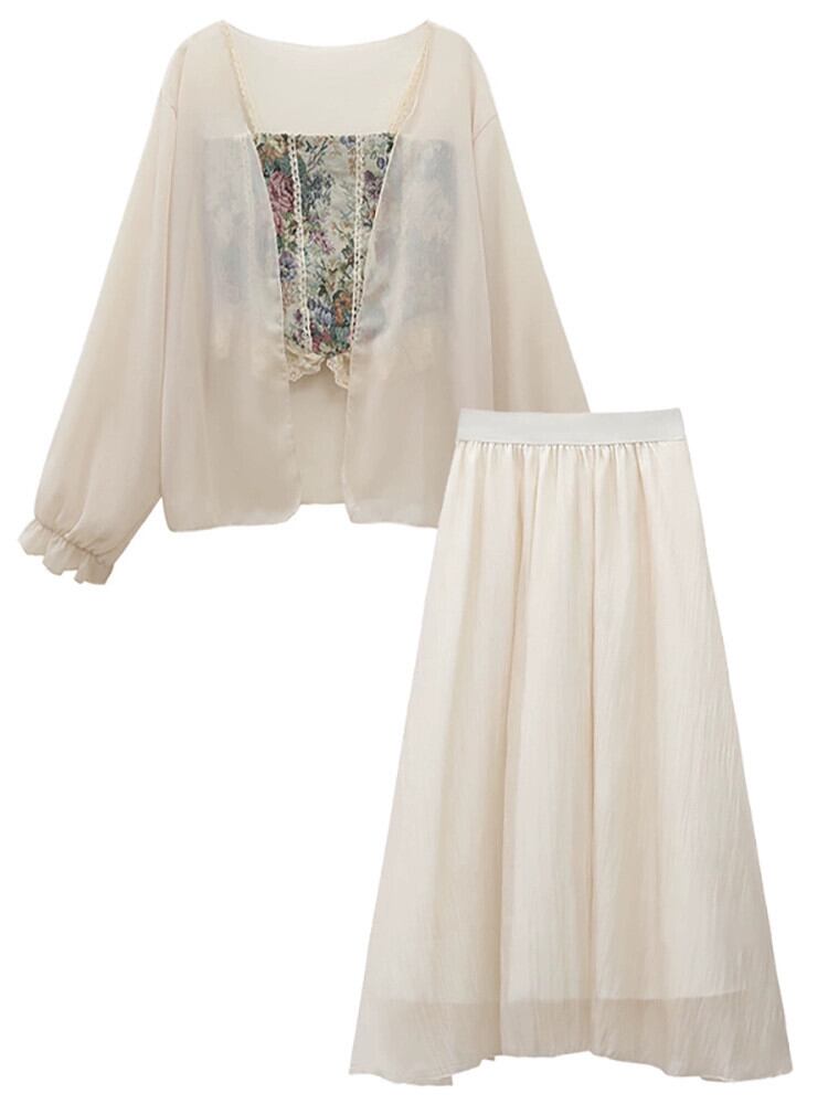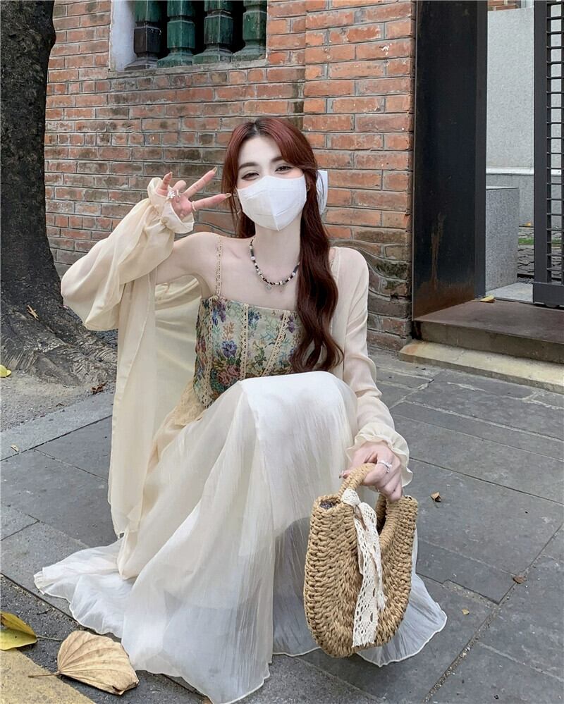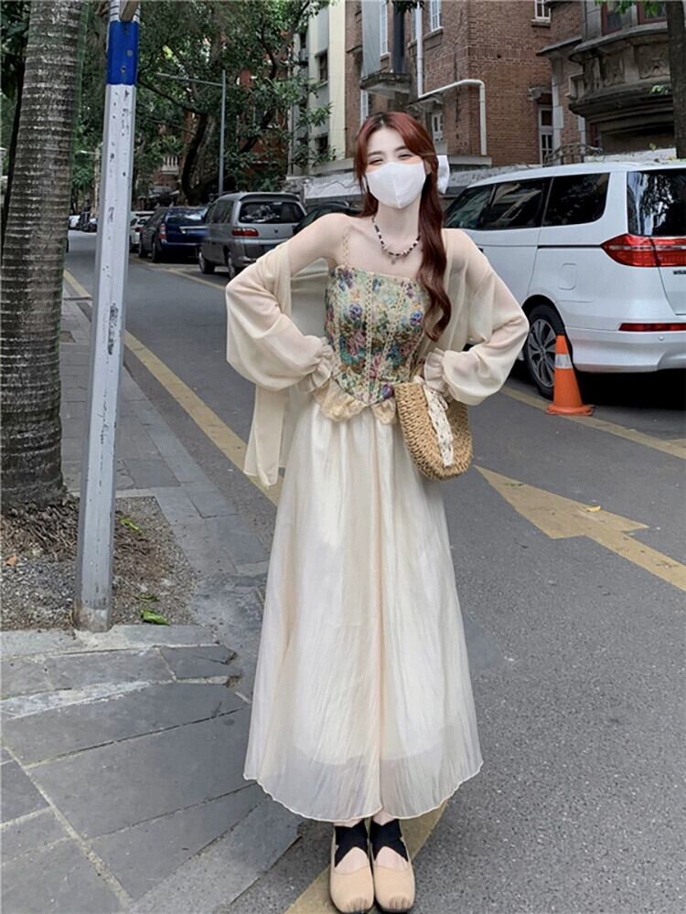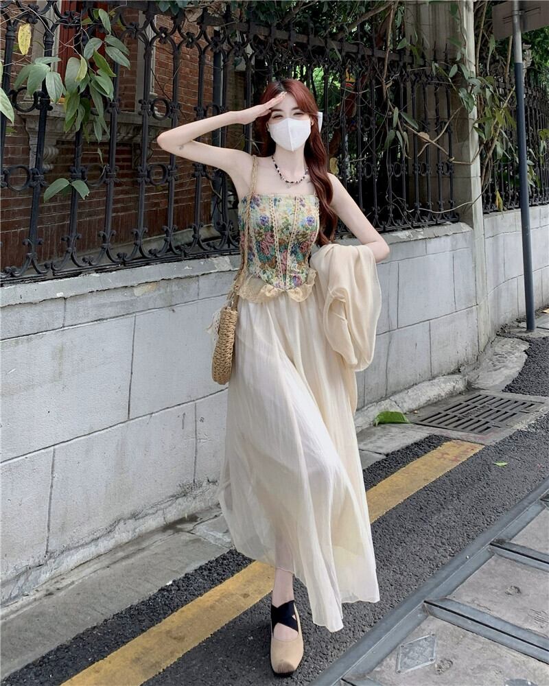フランスのレトロな油絵花キャミソール日焼け止めシャツスカート女性の夏の 2023 新しいファッションスーツ サマー 夏物 花柄 missk77860109130