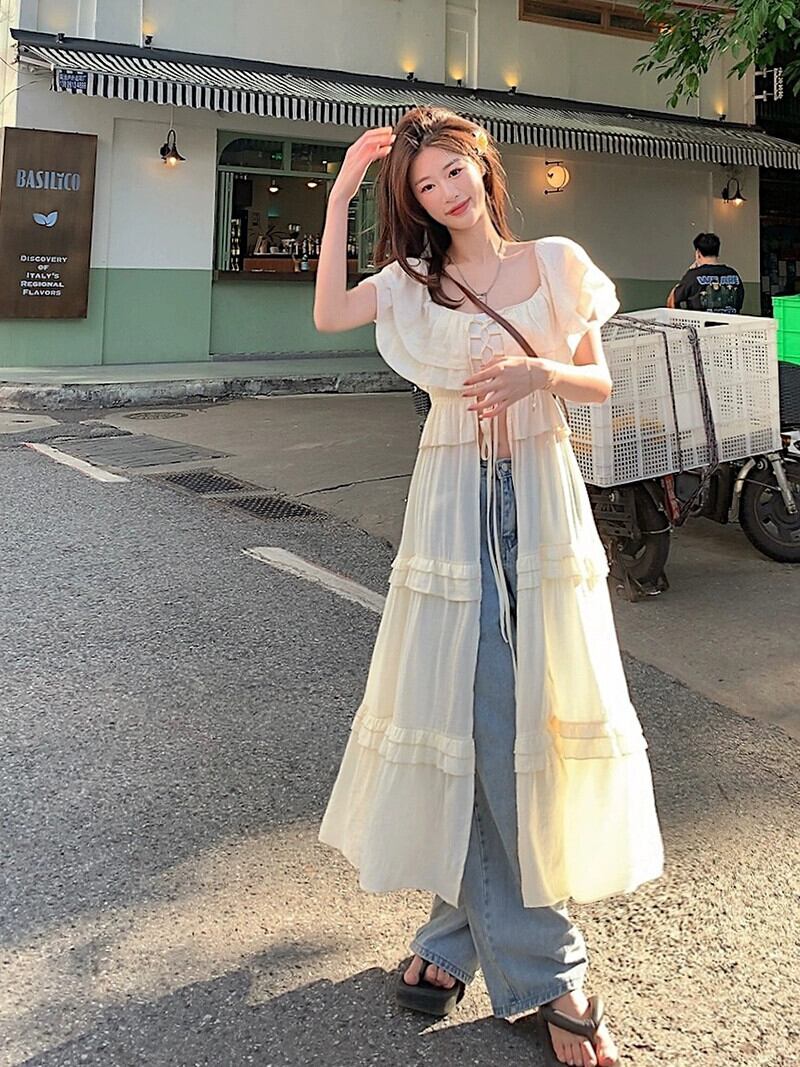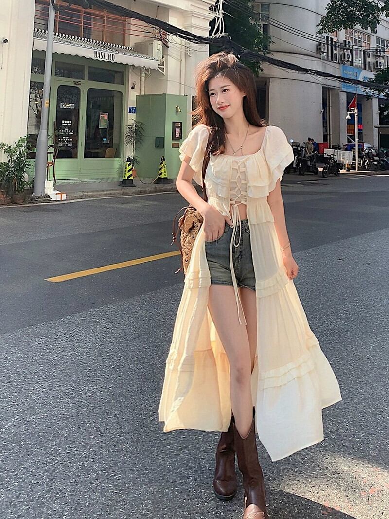 スパイスホリデースタイルドレス女性の2023年夏新しいストラップデザインのウエスト痩身感と日焼け防止スカート サマー 夏物 missk76678913429