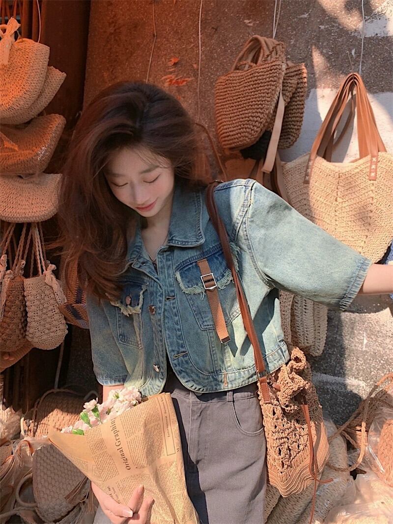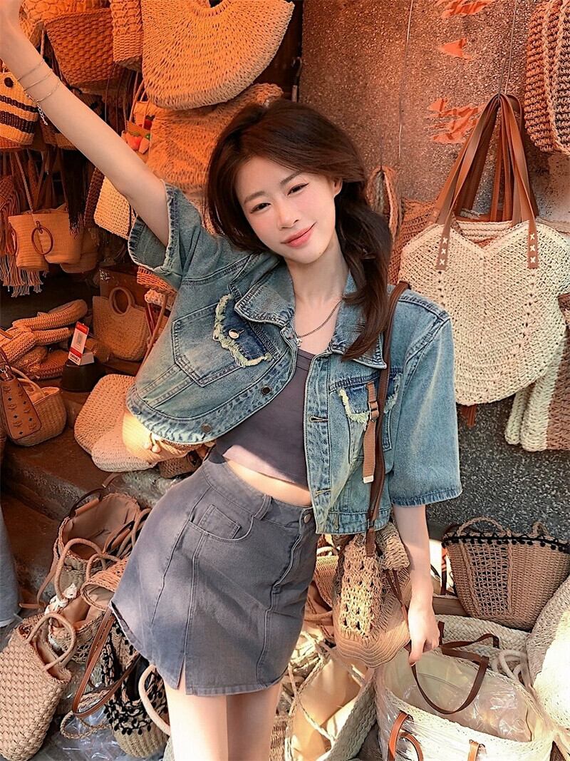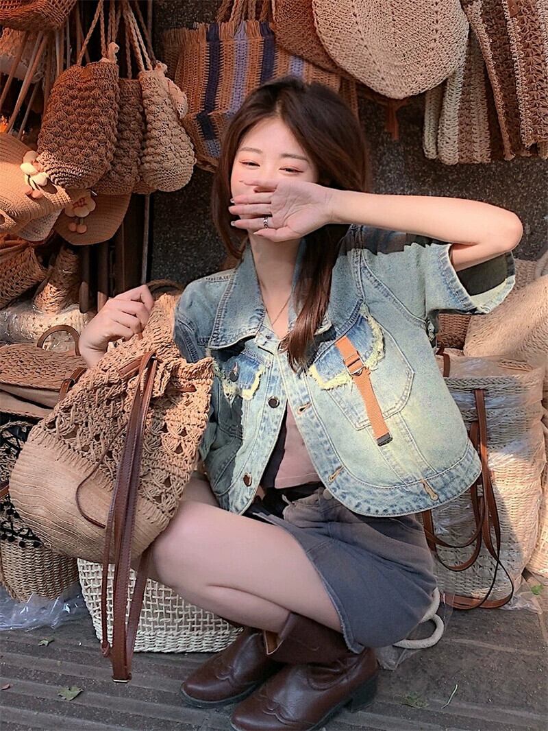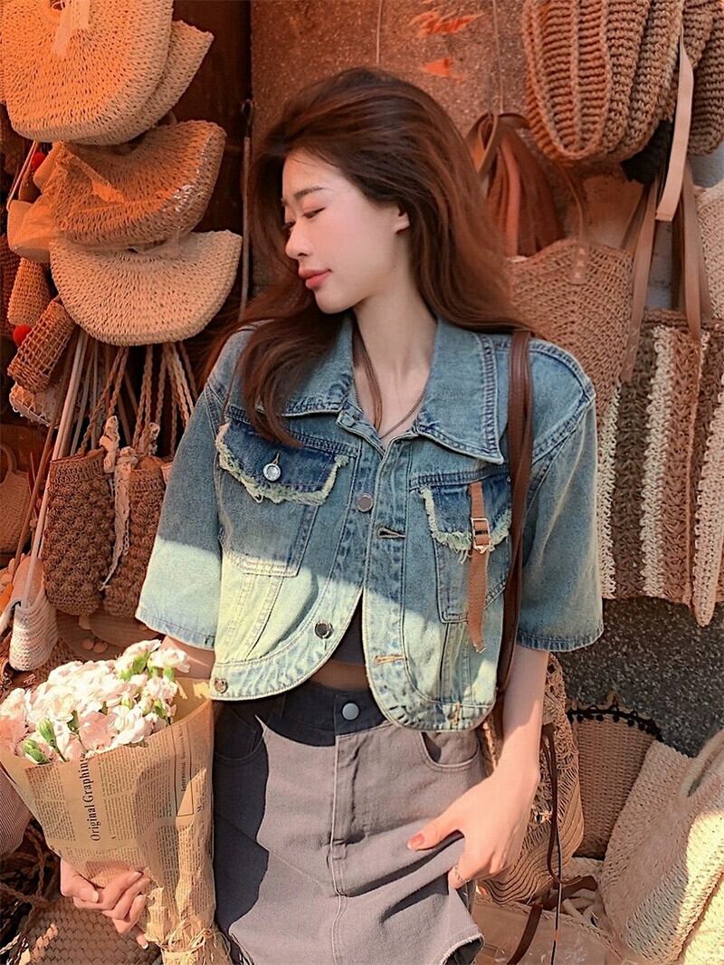 センスローエッジショートデニムジャケット女性の夏の2023新しいレトロスタイルルーズ長袖トップ潮 ロング サマー 夏物 missk61460979640