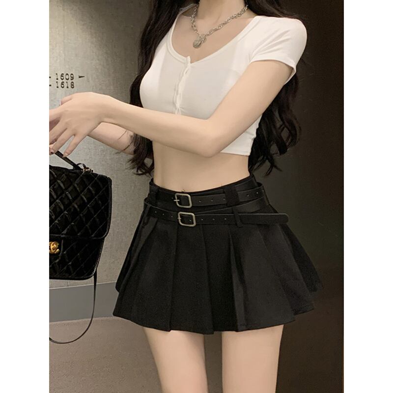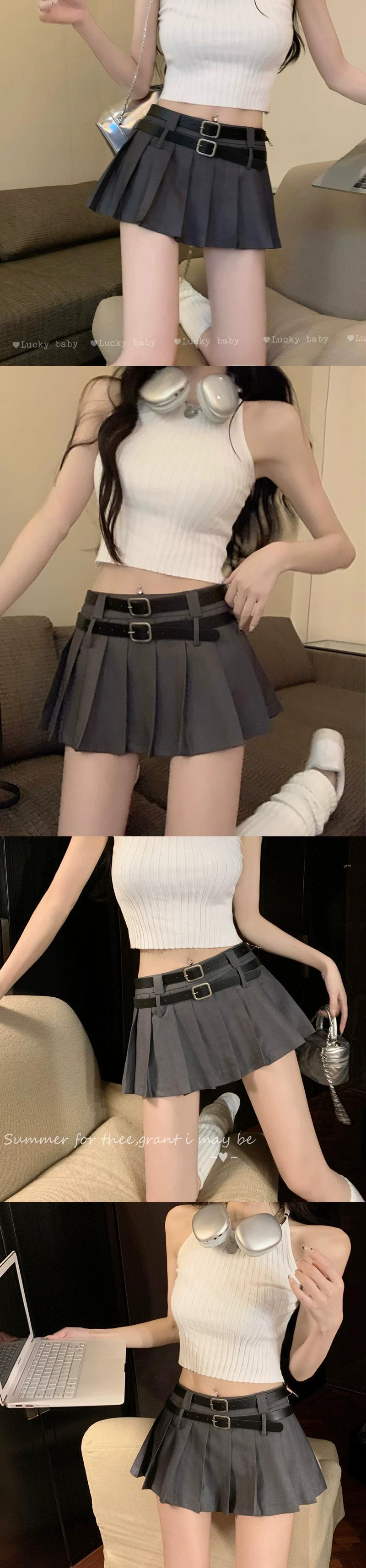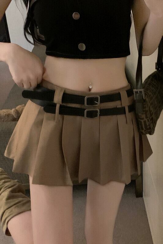 ダブルベルトプリーツスカートの女性の夏の新しいデザインセンスニッチハイウエスト防光カーキスカート ハイウェスト サマー 夏物 ハーネス missk64295482335