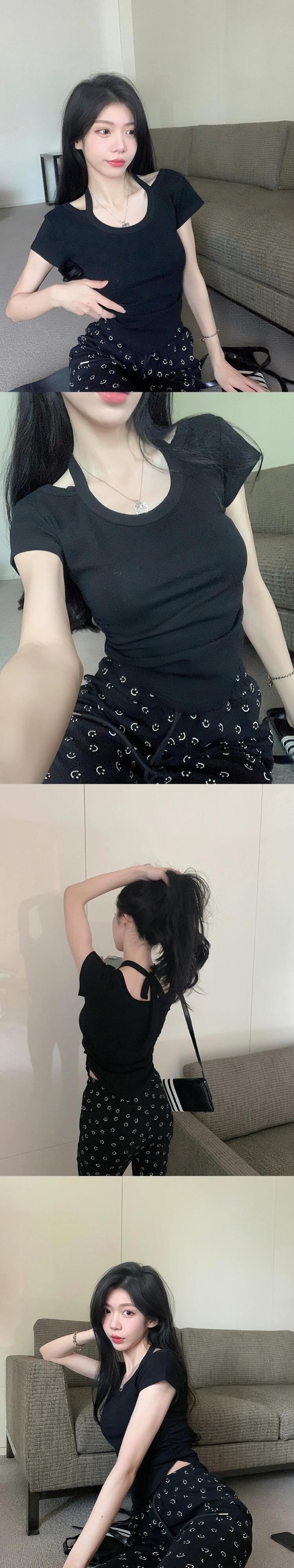 ミス Kekeli 夏バージョン 2023 新しい薄い BM スタイルのファッションデザインセンスぶら下げネック Tシャツトップ婦人服 サマー 夏物 missk73476298740