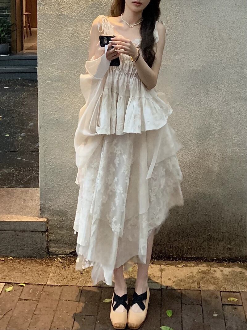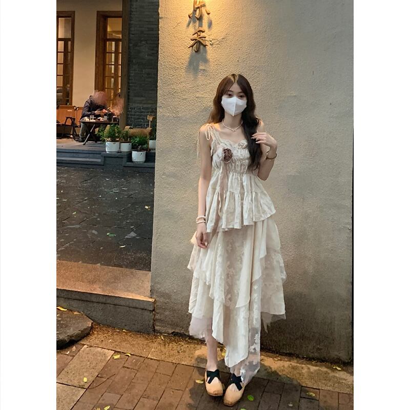 優しい風高品質プリーツキャミソール不規則な重工業スカート女性の夏の新しいファッション 2 点セット サマー 夏物 missk67059964321