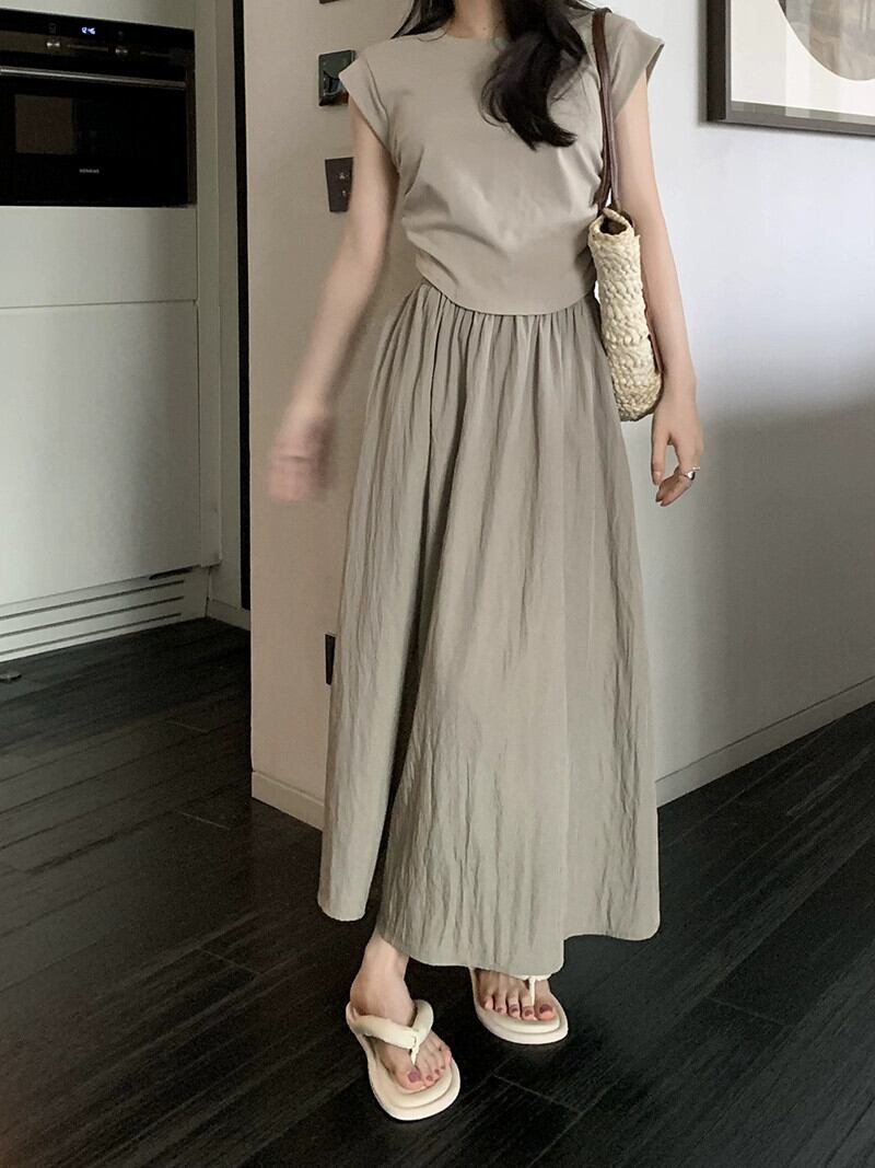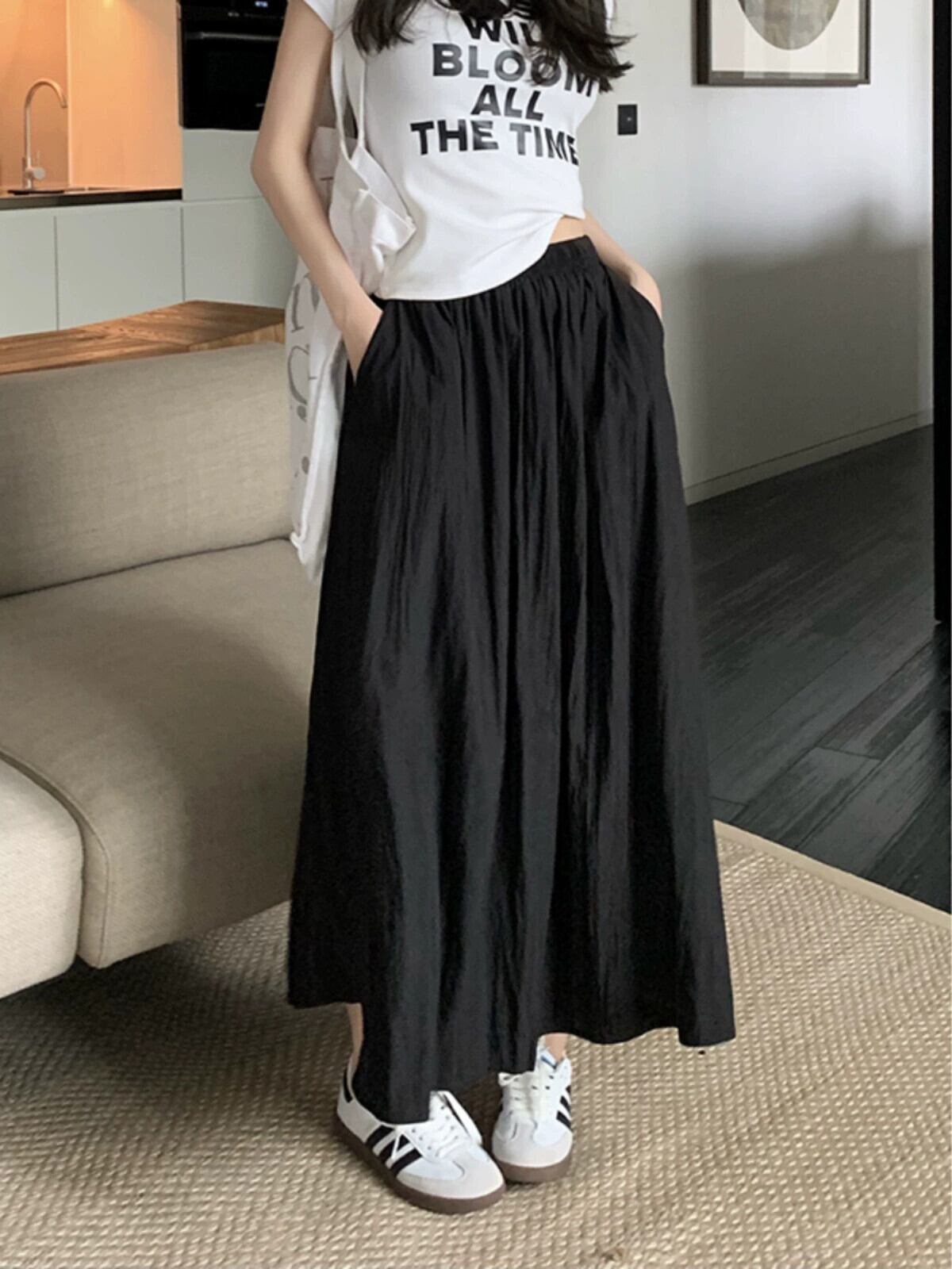 プリーツミドル丈スカートの女性の夏の 2023 新しいレトロハイウエストスリム弾性ウエスト A ラインスカートアンブレラスカート ハイウェスト エラスティック 伸縮 サマー 夏物 Aライン missk73120601318